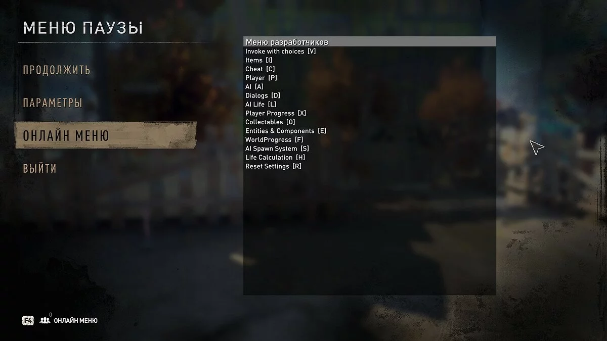 - Запустите игру и нажмите «Esc», чтобы открыть меню разработчиков.