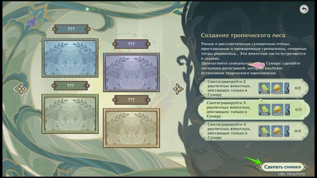 Гайд по испытанию «Блуждание в чаще: Мгновенный образ» в Genshin Impact. Как найти и сфотографировать животных в Сумеру