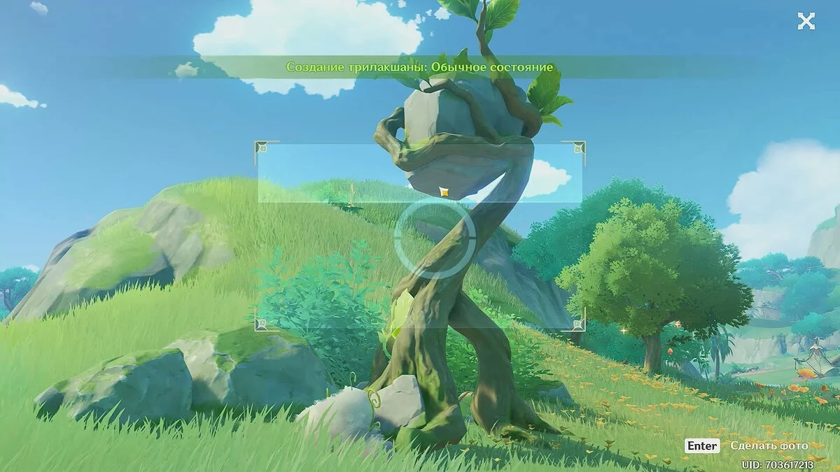 Камни часто разбросаны в местах, где вам предстоит решить загадки или головоломки. Используйте стихию Дендро и сфотографируйте лианы в обычном состоянии. Если вы впервые делаете это с подобным камнем, то не забудьте подобрать дендрокул. После чего можно запечатлеть ещё два состояния растения с помощью Электро и Пиро стихий.