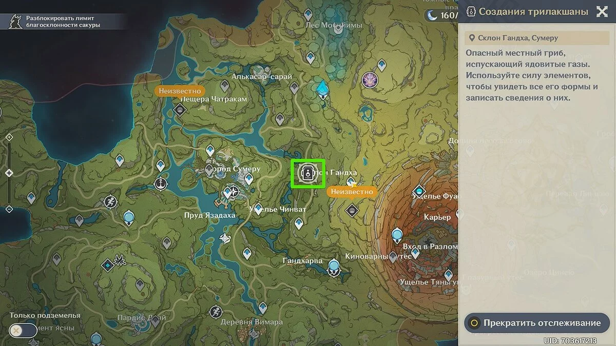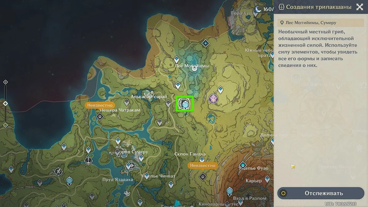 Подобные грибы разбросаны по всей территории Сумеру, но игра предлагает отправиться в местность между Лесом Мотиймы и Алькасар-сараем. Используйте статую Дендро Архонта, чтобы быстро попапсть сюда.