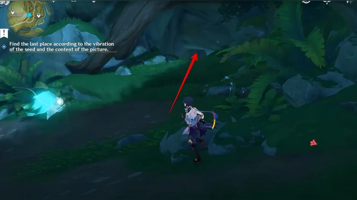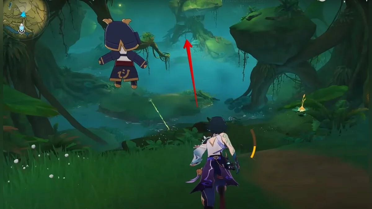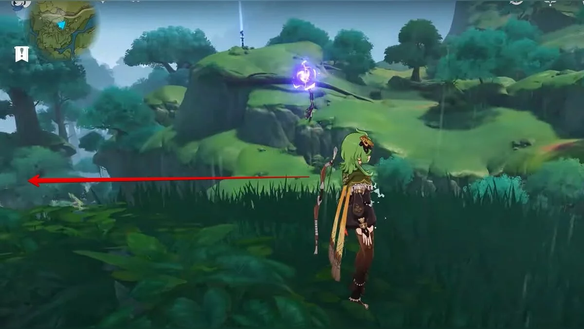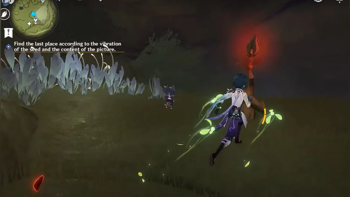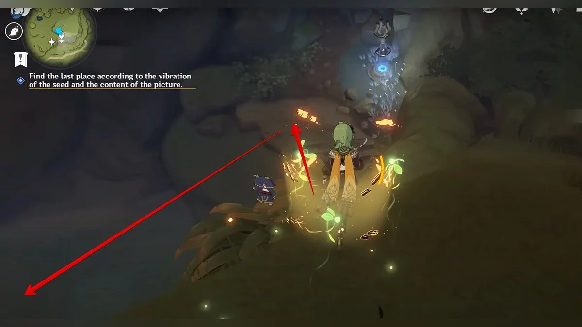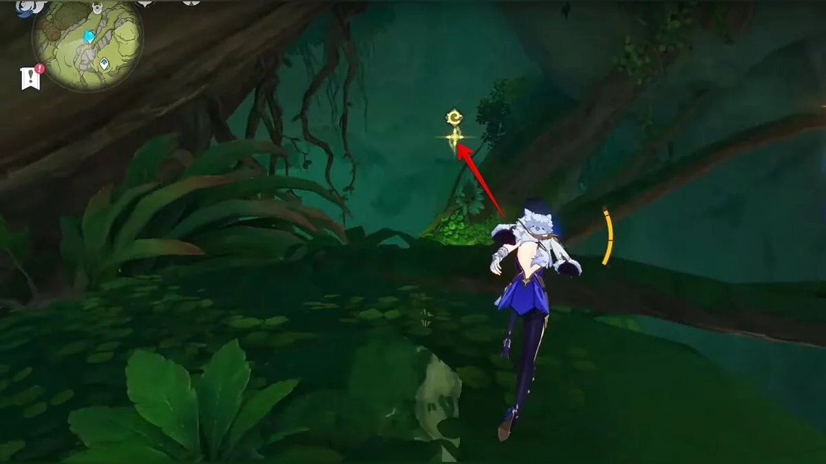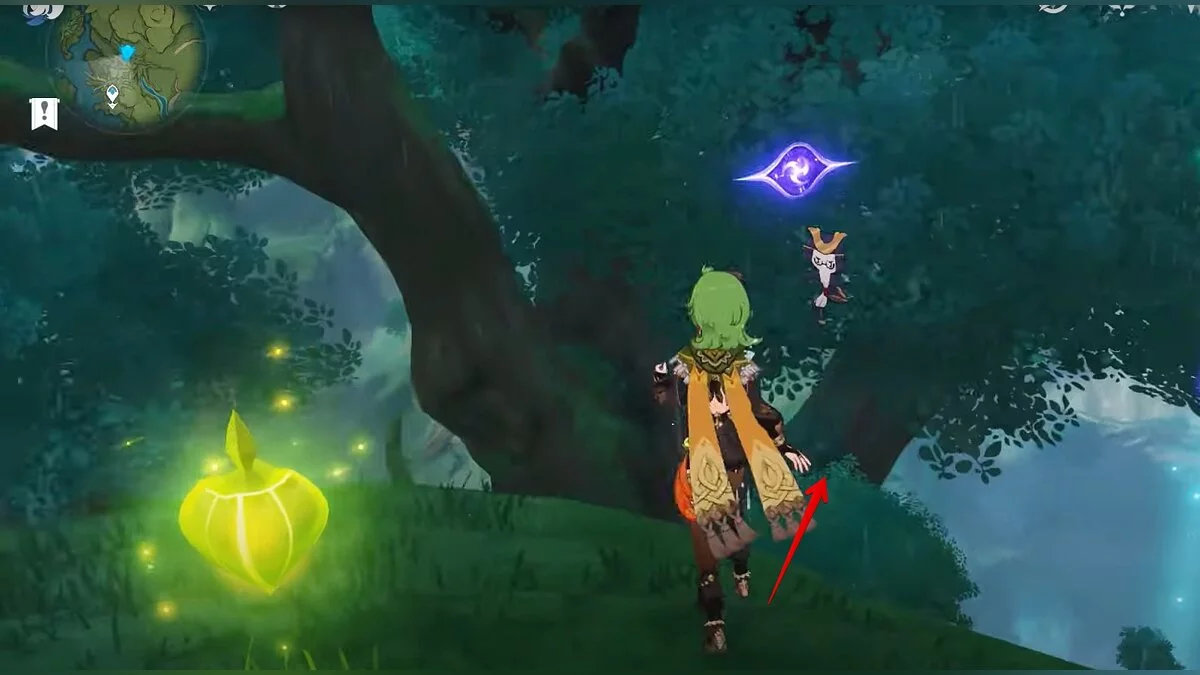 Для решения этой загадки вам потребуется Дендро-персонаж. Двигайтесь к точке на карте.