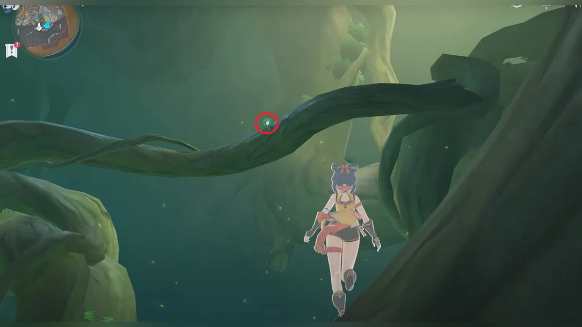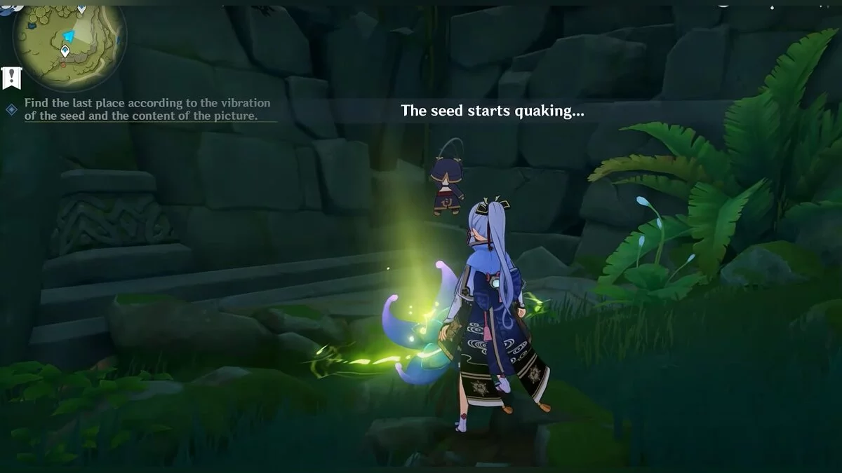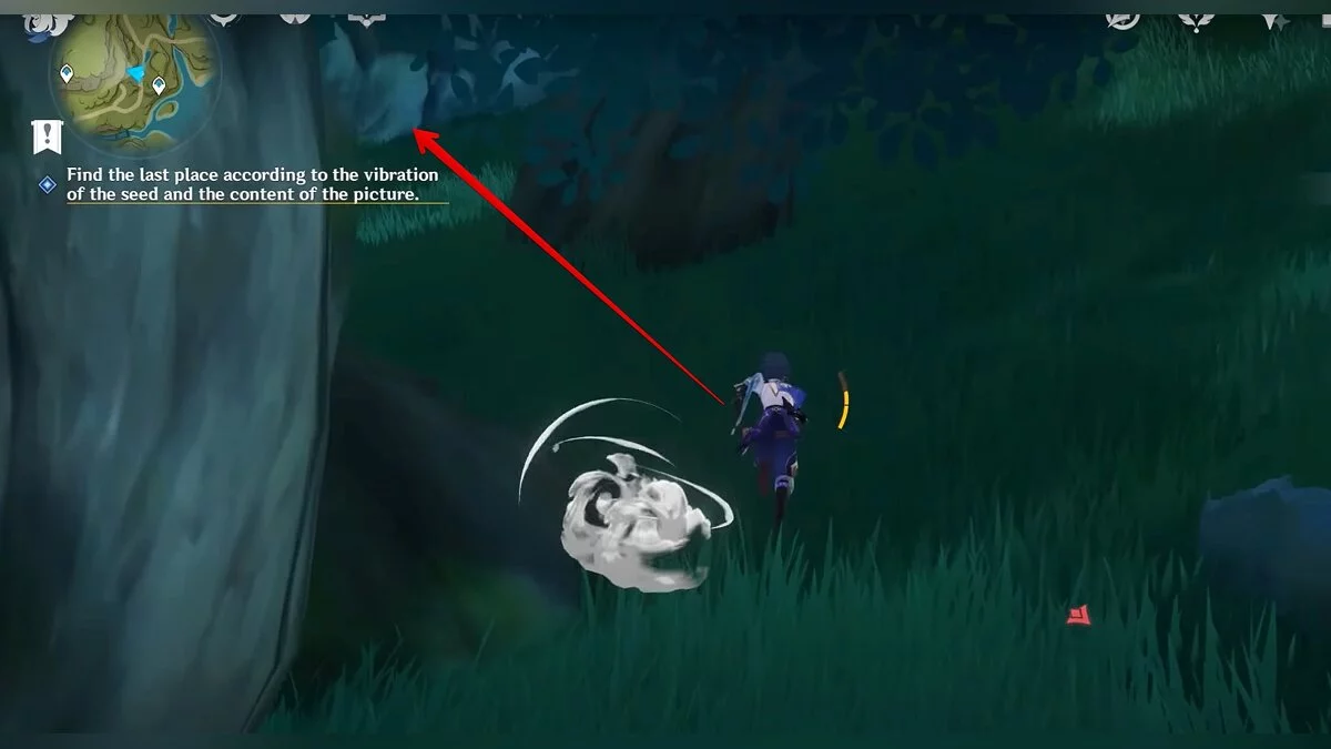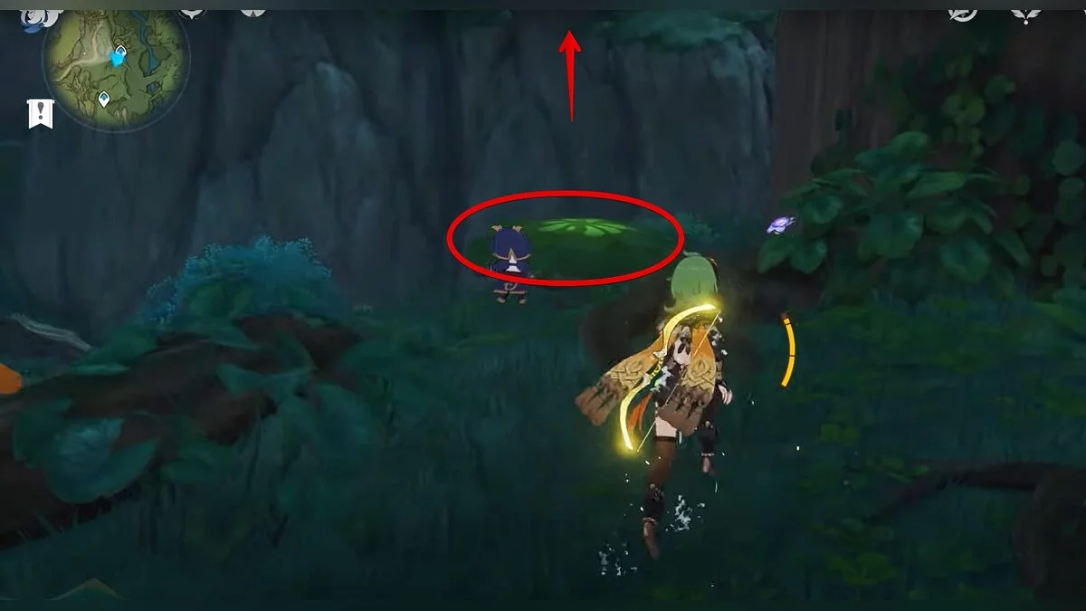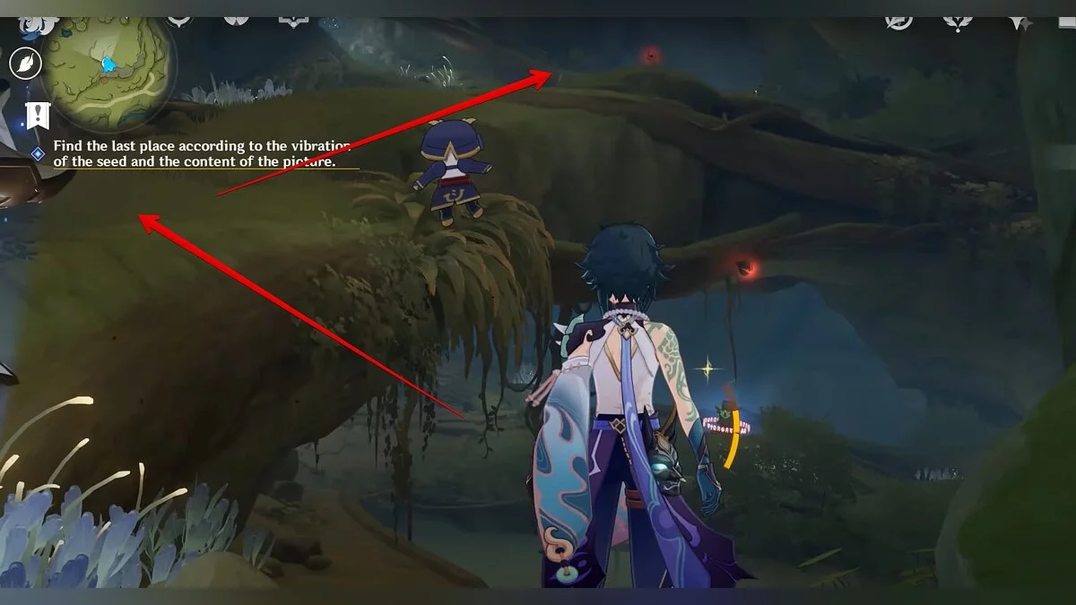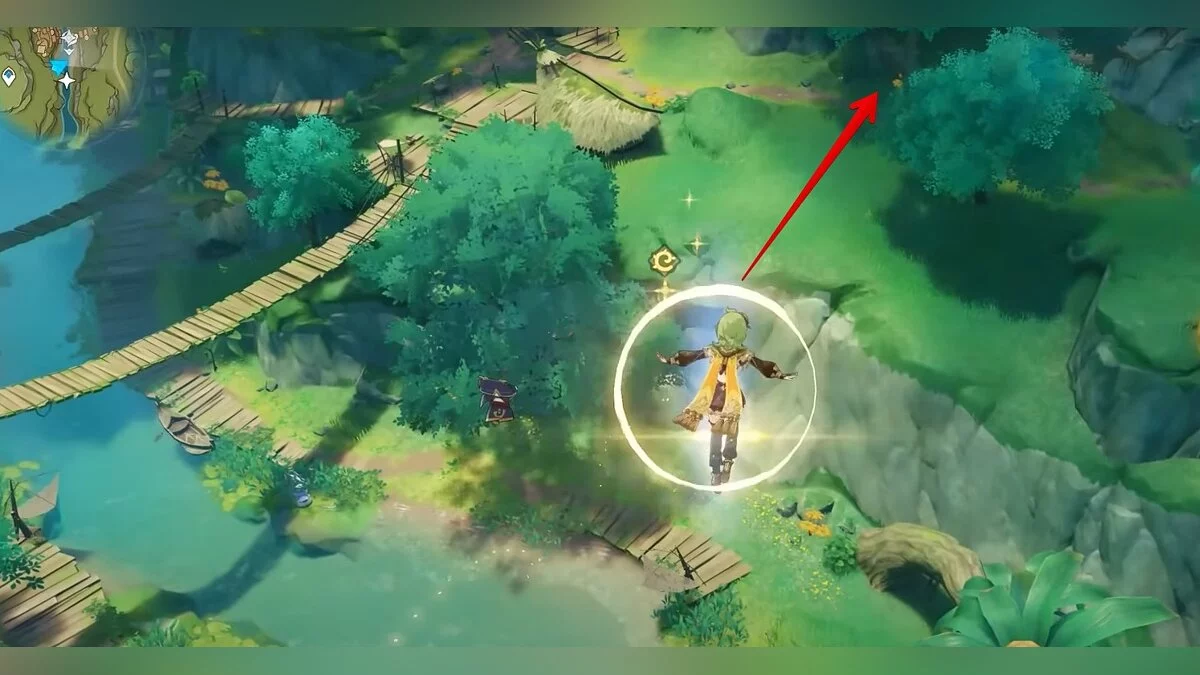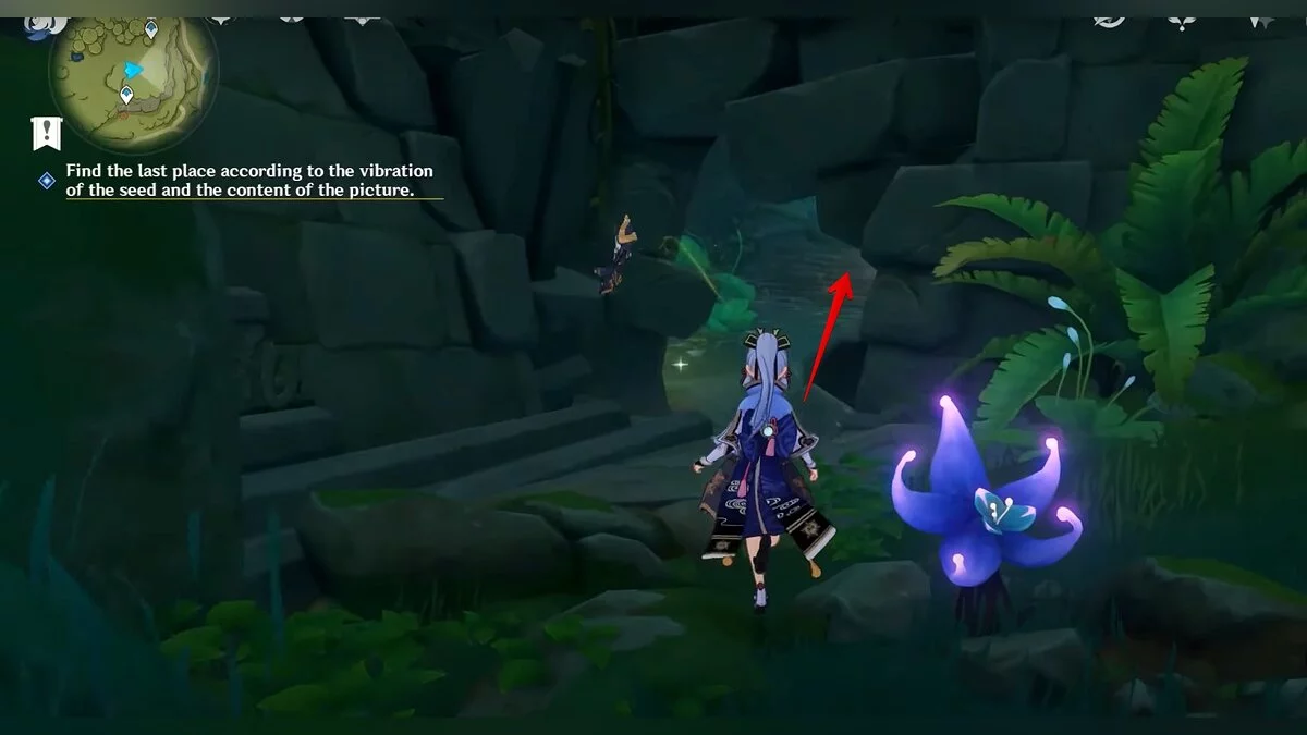 Для решения этой загадки вам потребуется Дендро-персонаж. Двигайтесь к точке на карте.