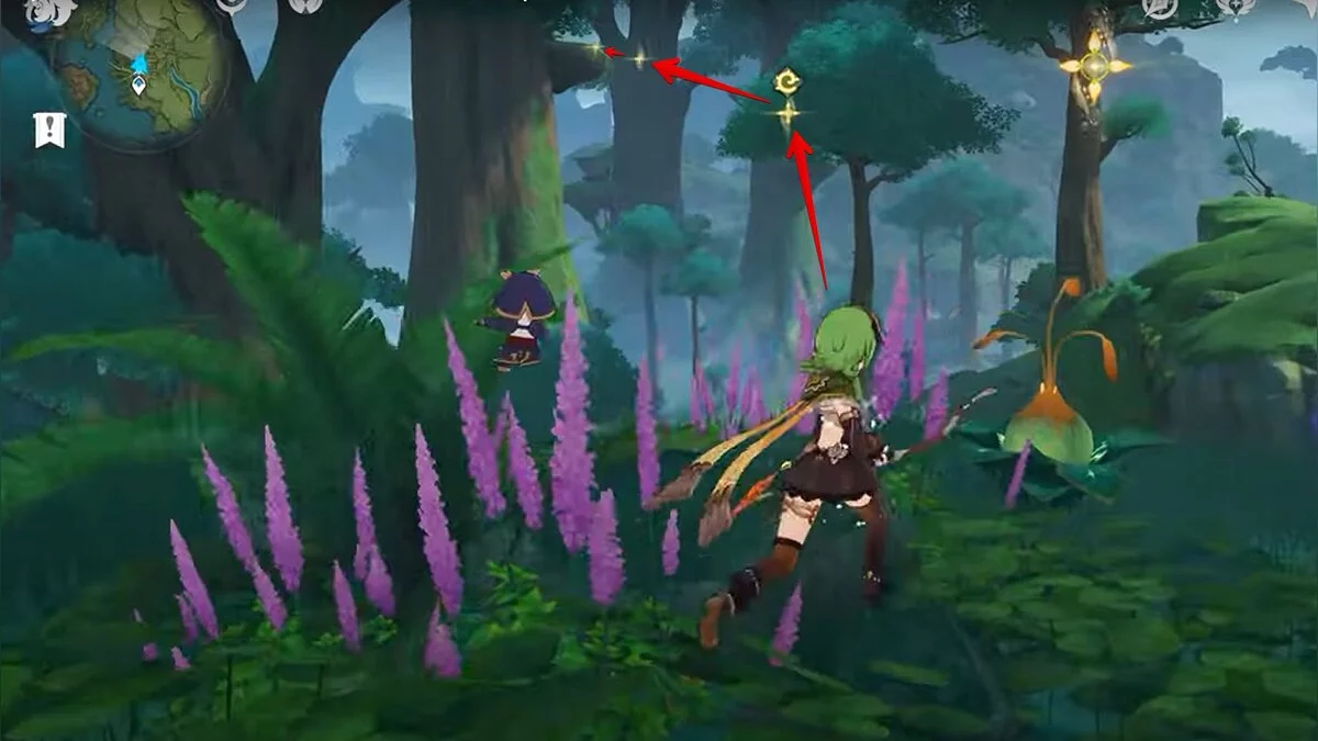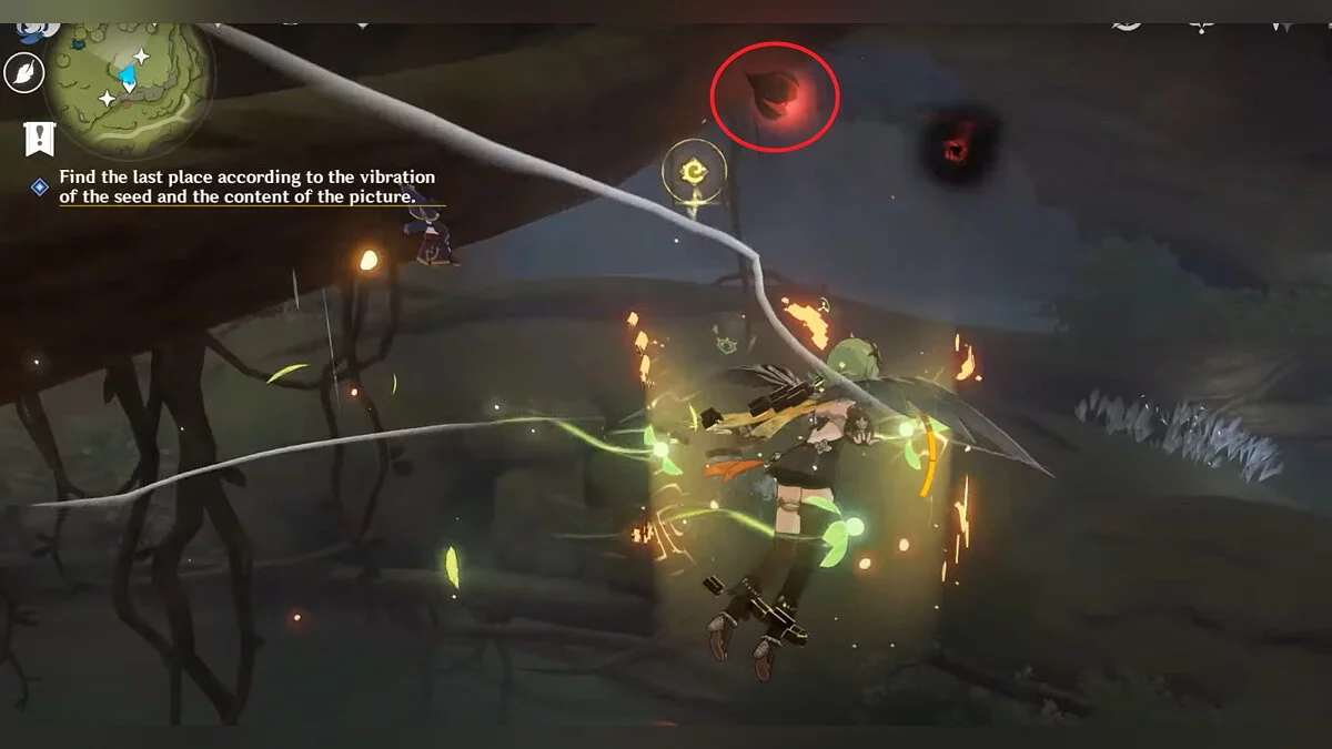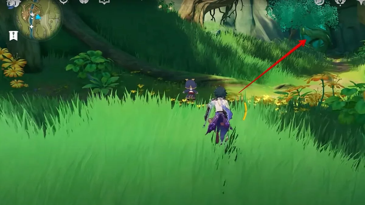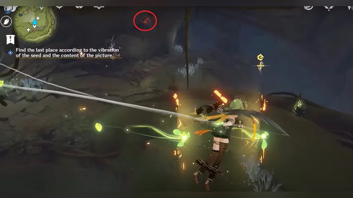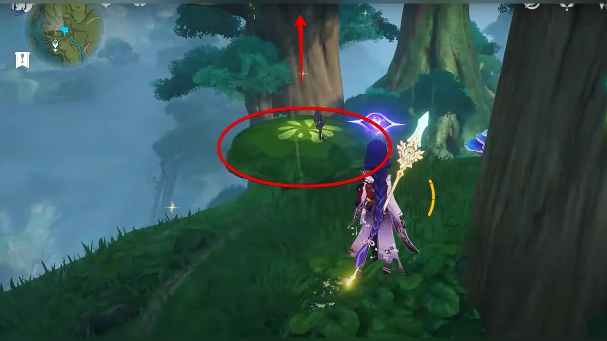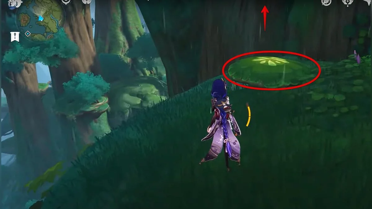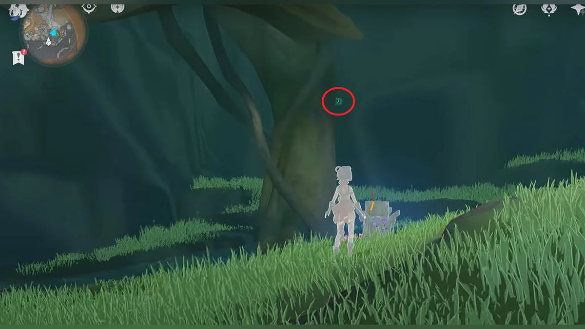 Для решения этой загадки вам потребуется Дендро-персонаж. Двигайтесь к точке на карте.