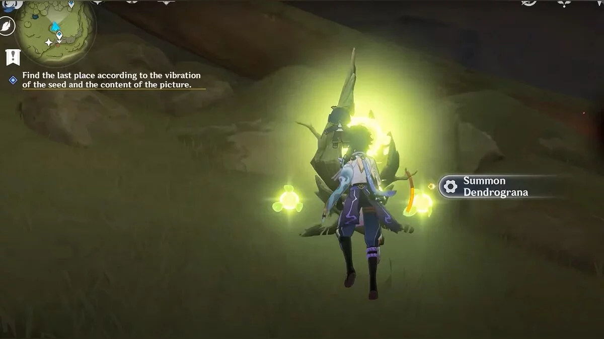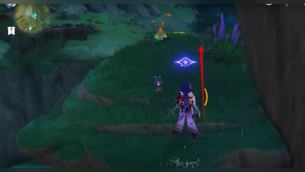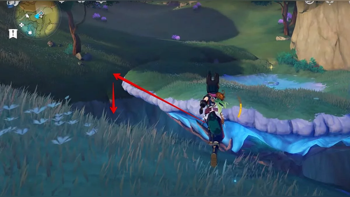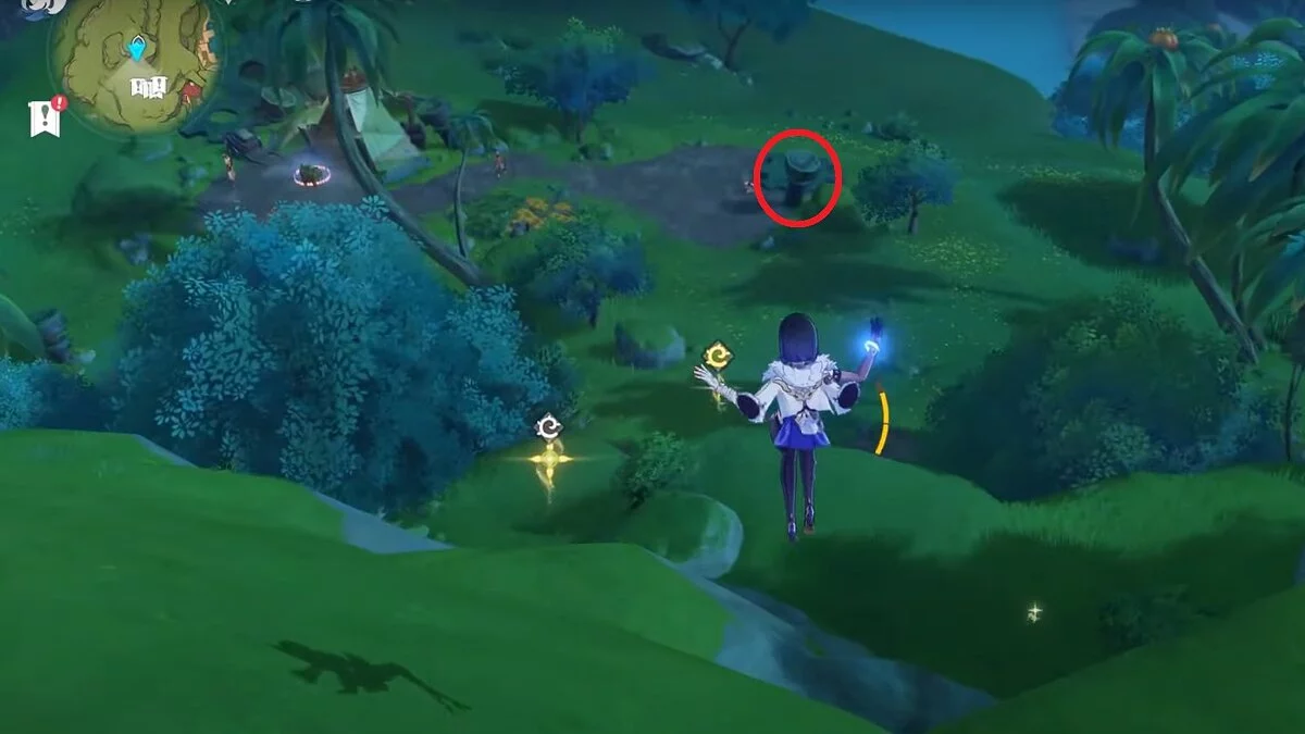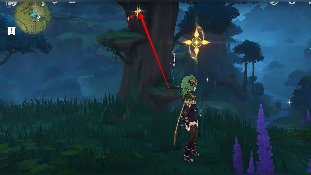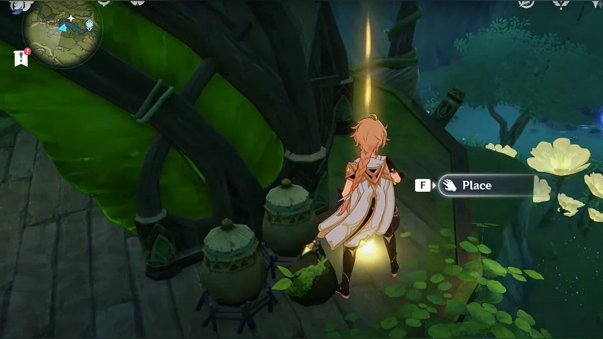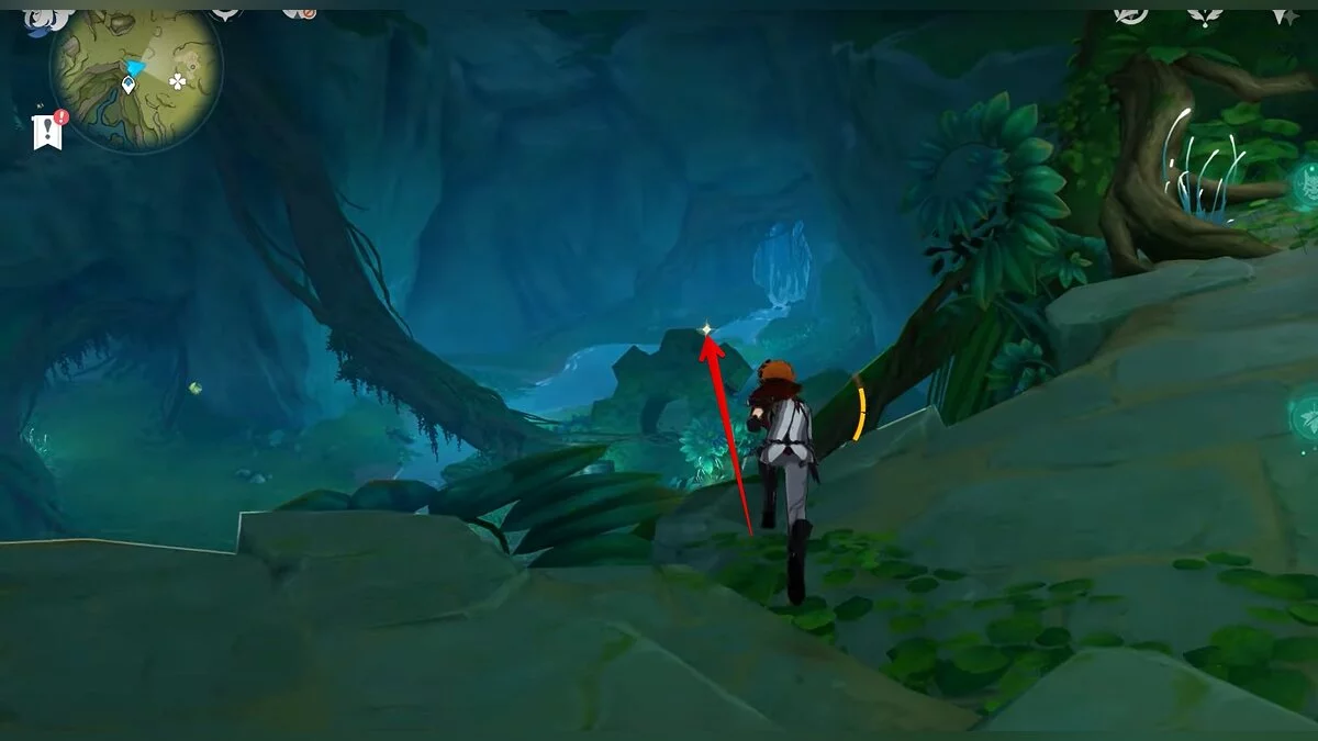 Для решения этой загадки вам потребуется Дендро-персонаж. Двигайтесь к точке на карте.
