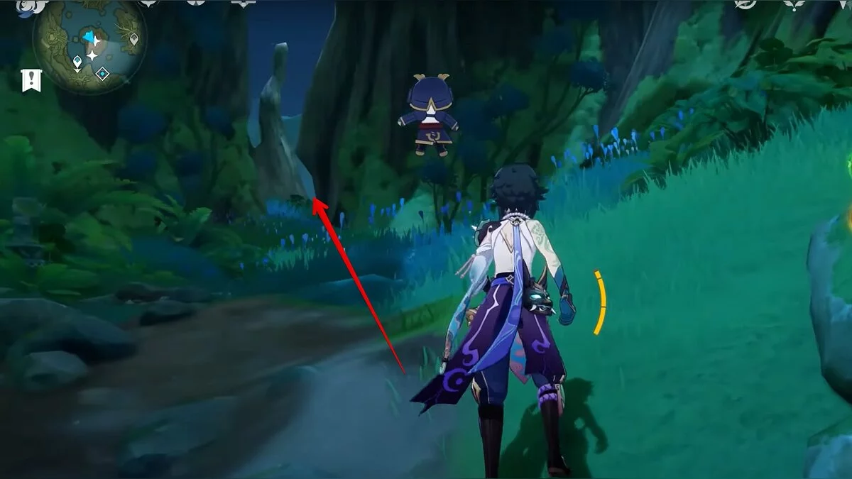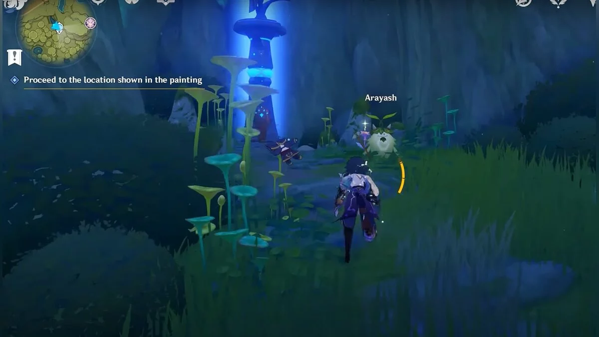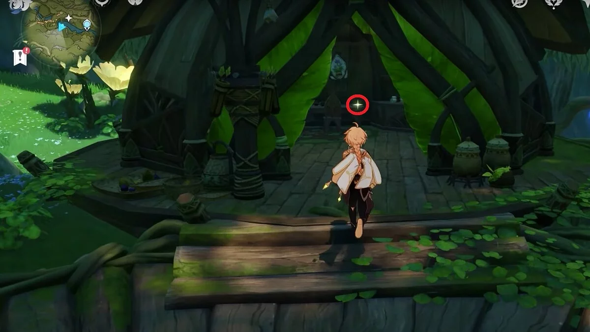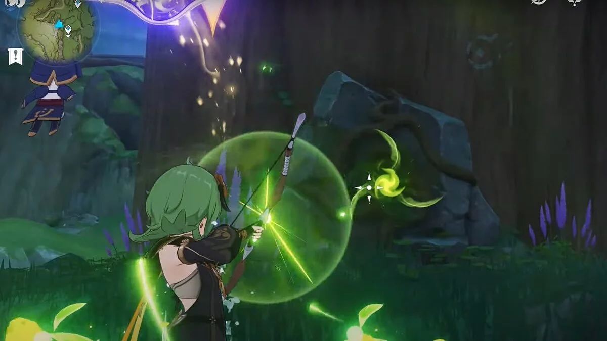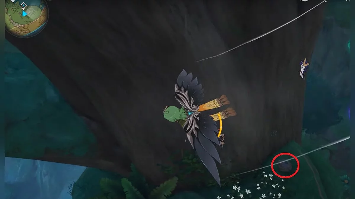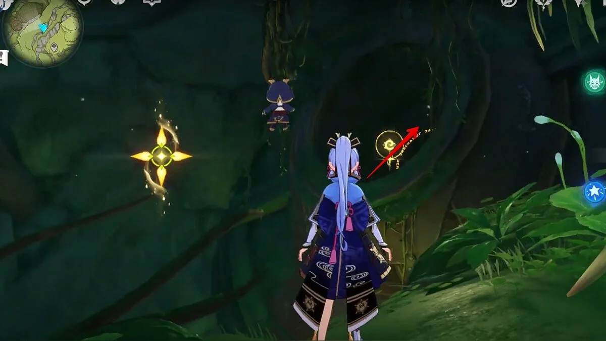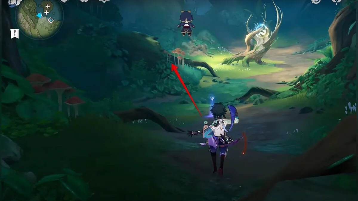 Для решения этой загадки вам потребуется Дендро-персонаж. Двигайтесь к точке на карте.