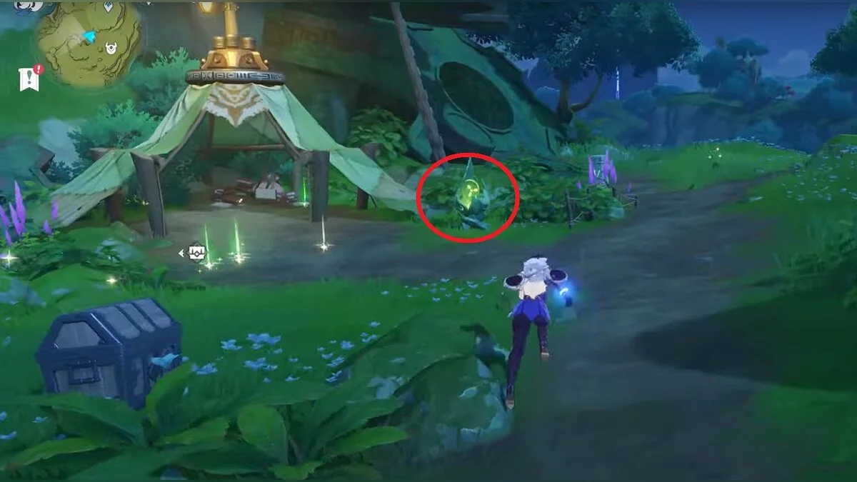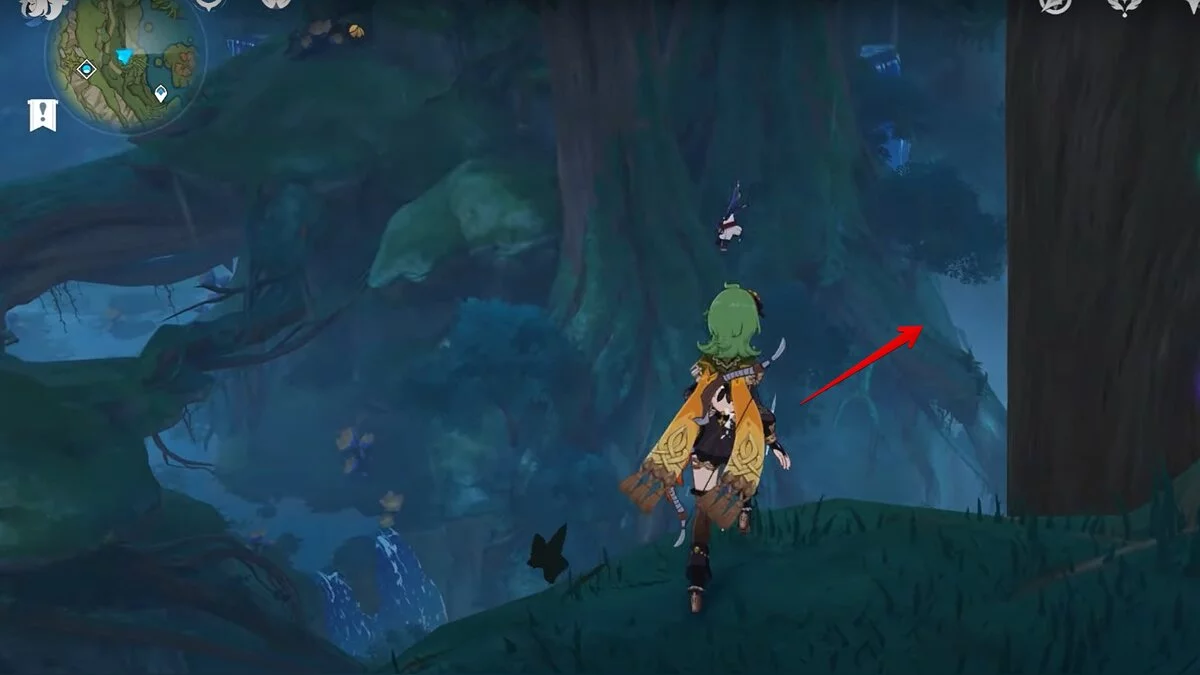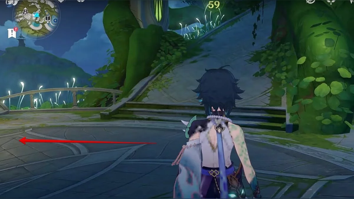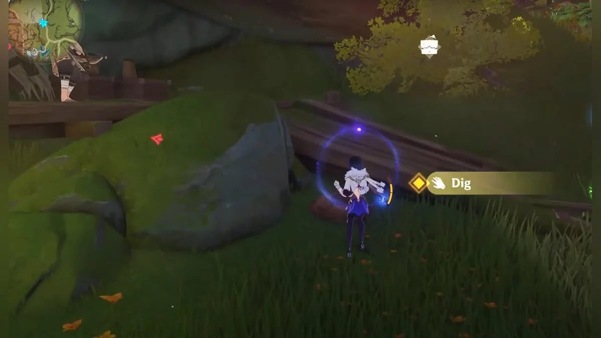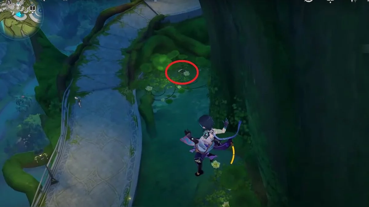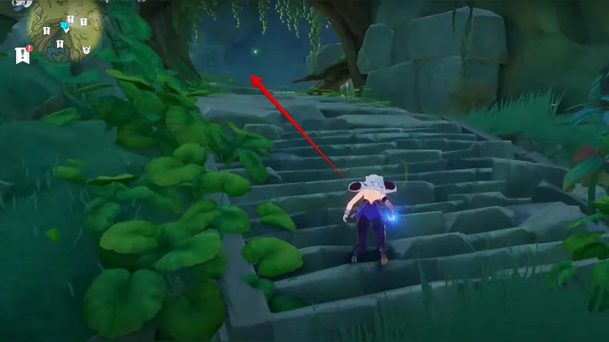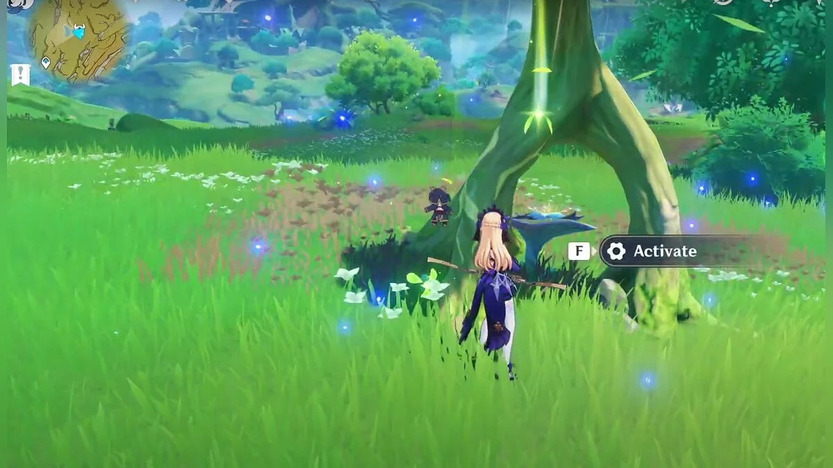 Для решения этой загадки вам потребуется Дендро-персонаж. Двигайтесь к точке на карте.
