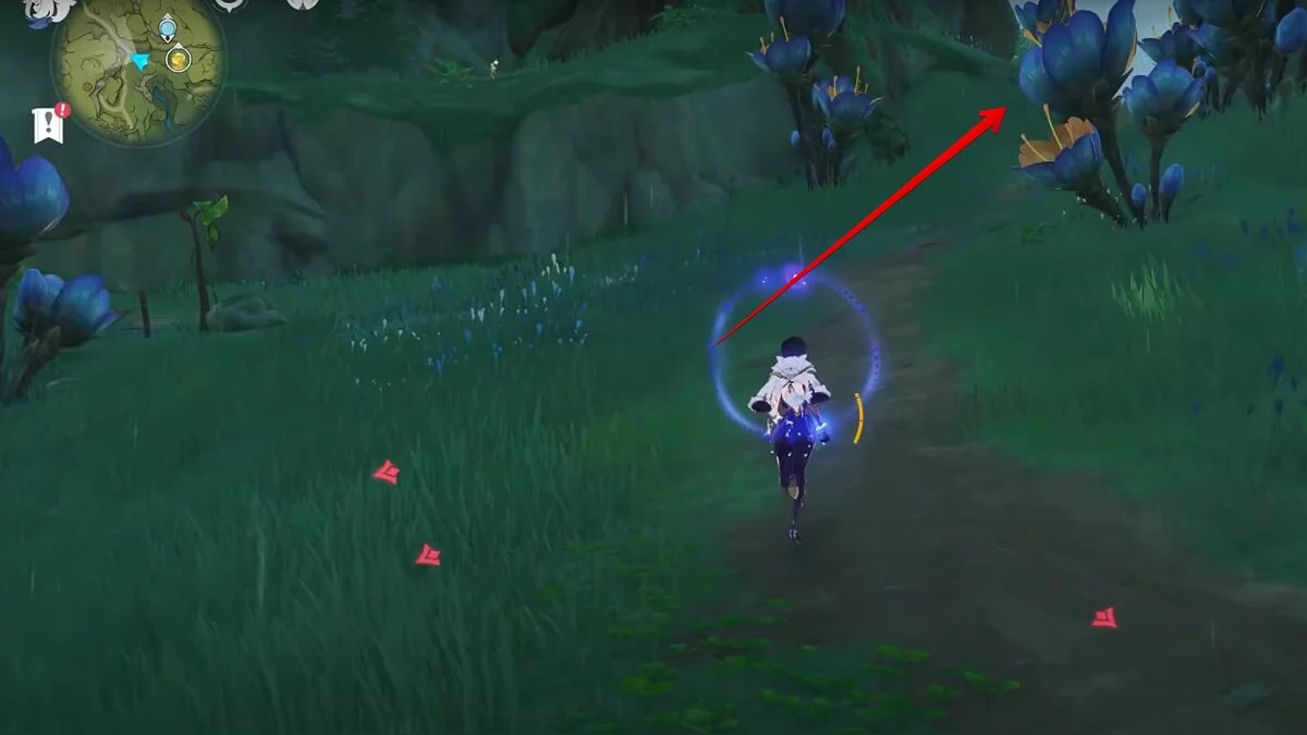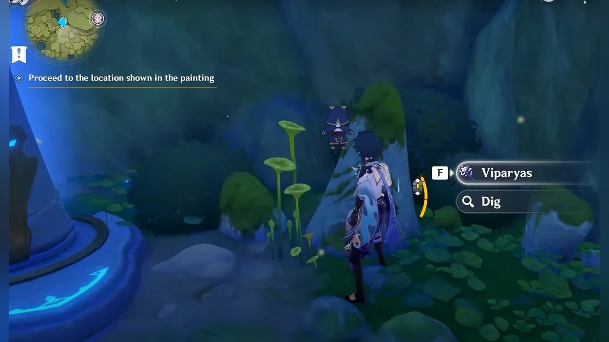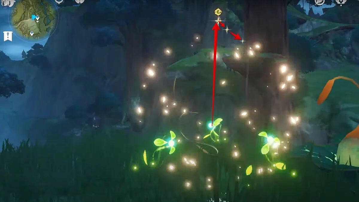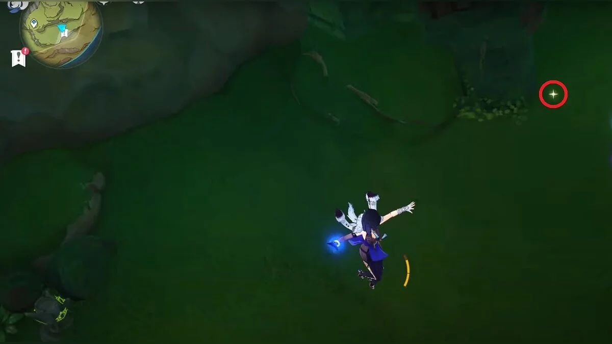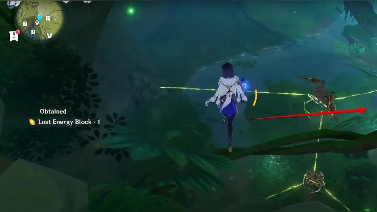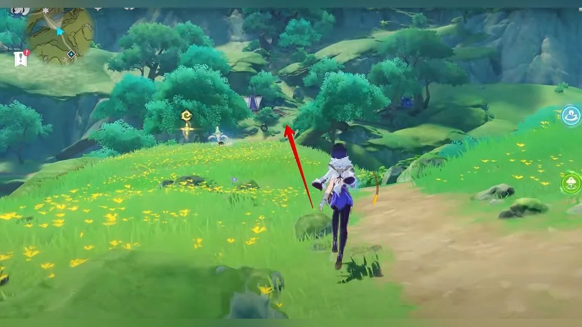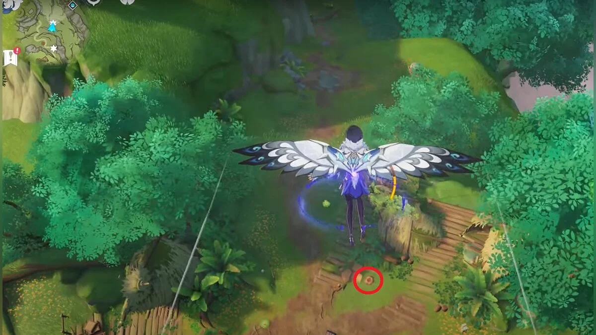 Для решения этой загадки вам потребуется Дендро-персонаж. Двигайтесь к точке на карте.