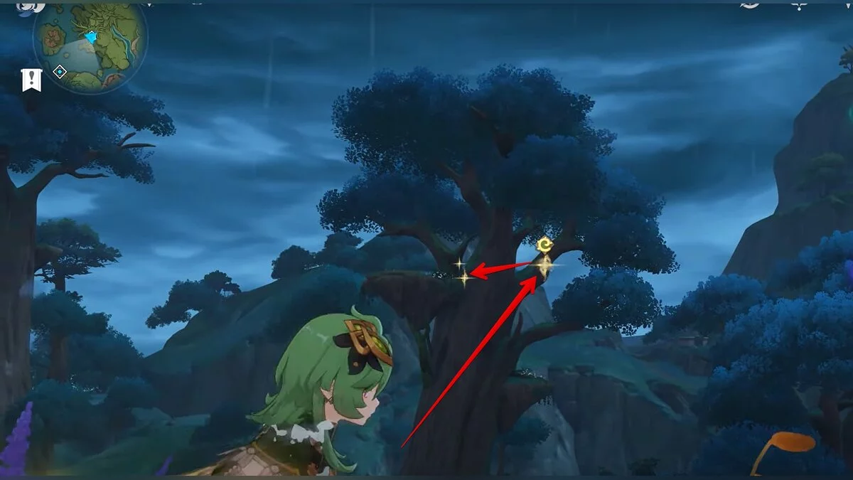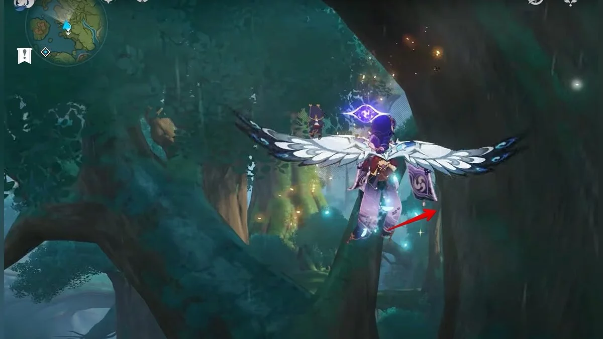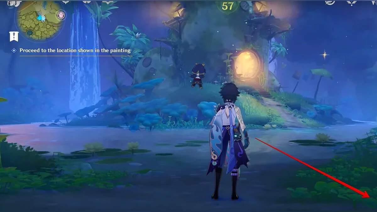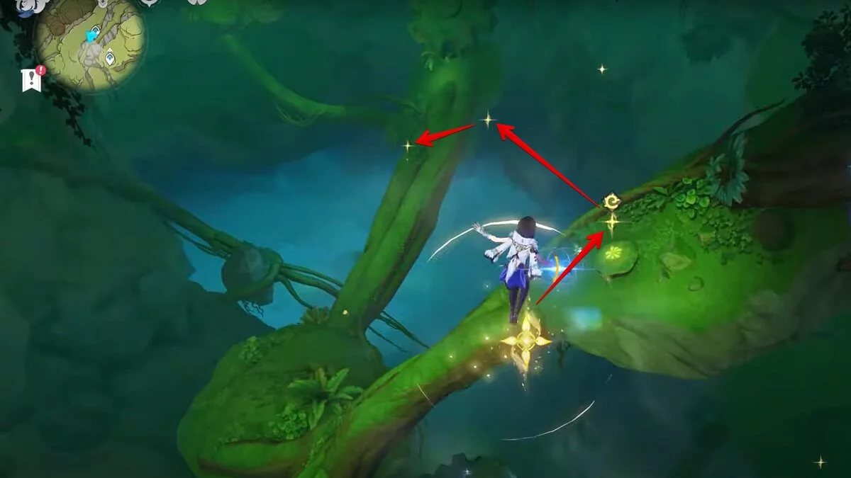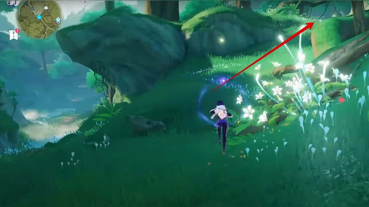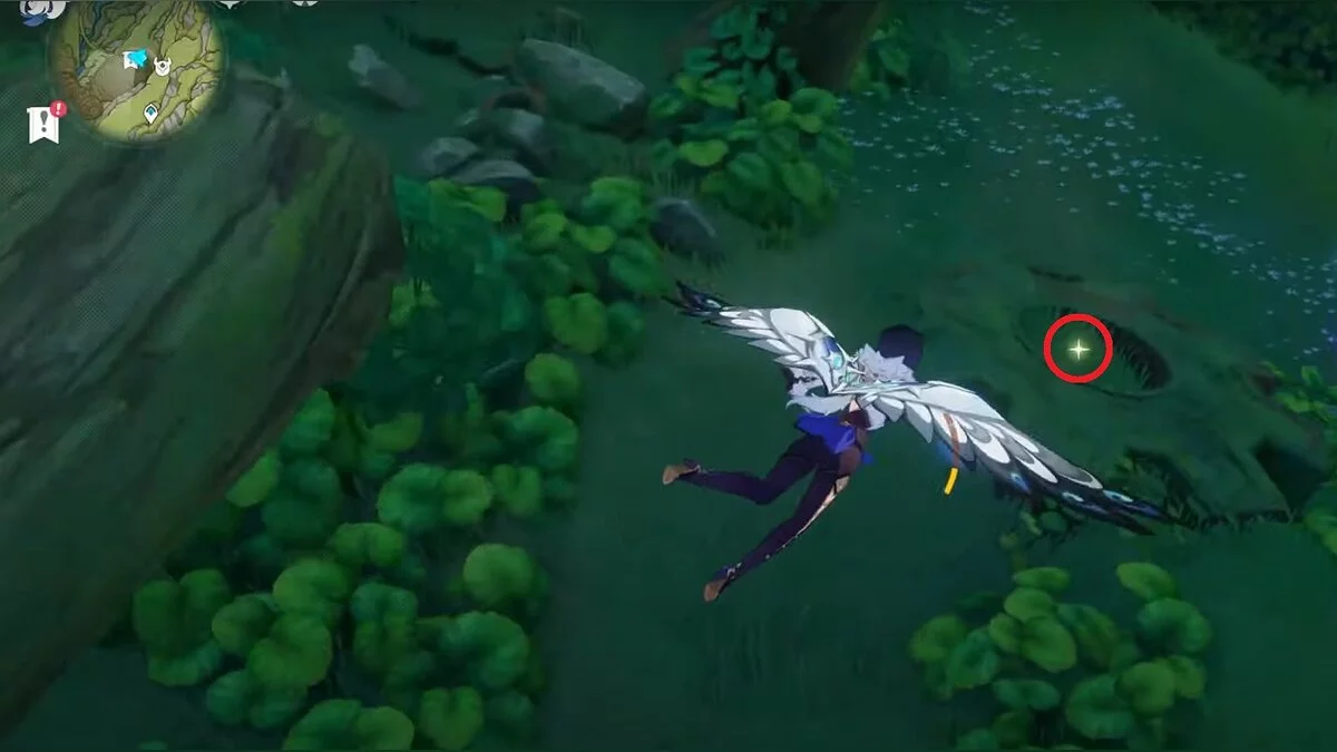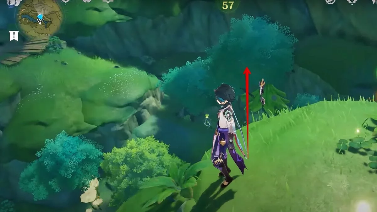 Для решения этой загадки вам потребуется Дендро-персонаж. Двигайтесь к точке на карте.