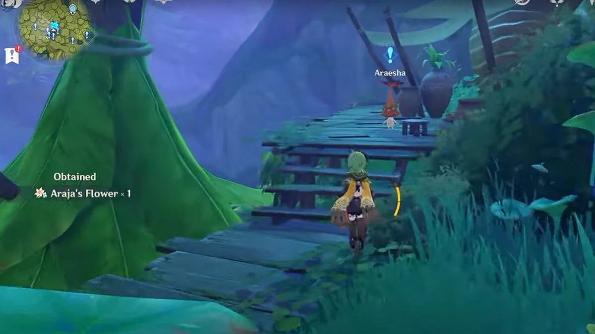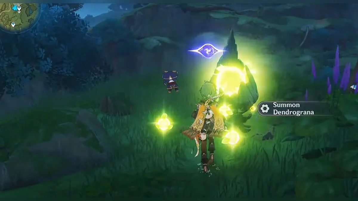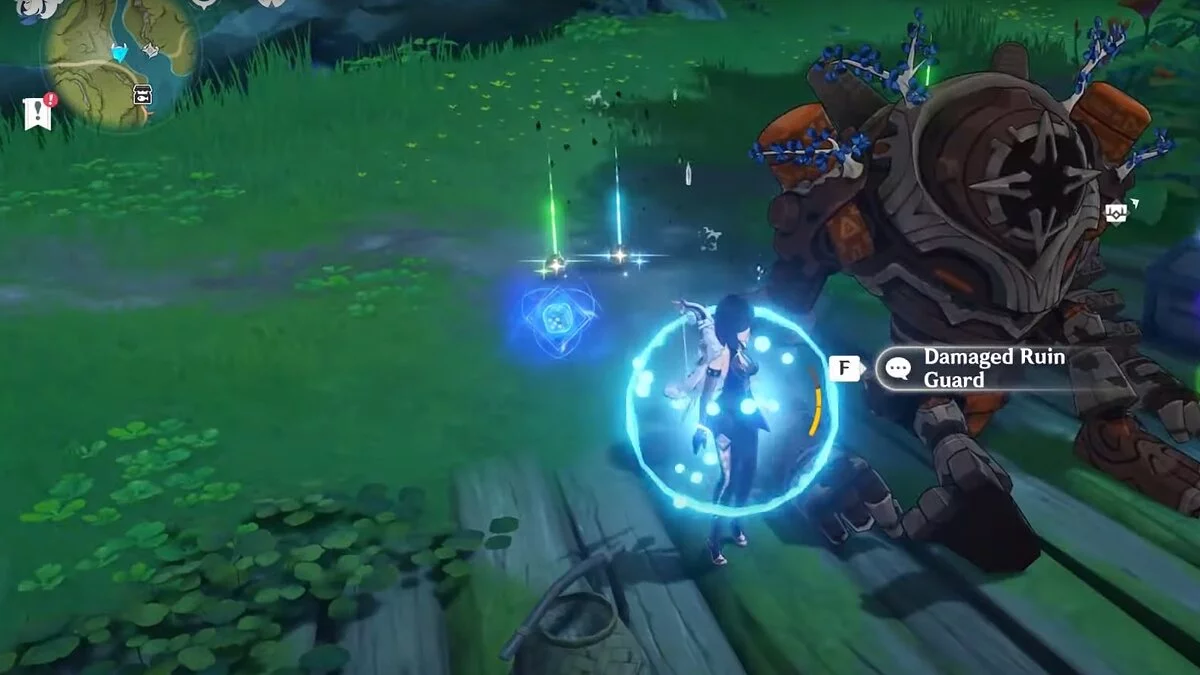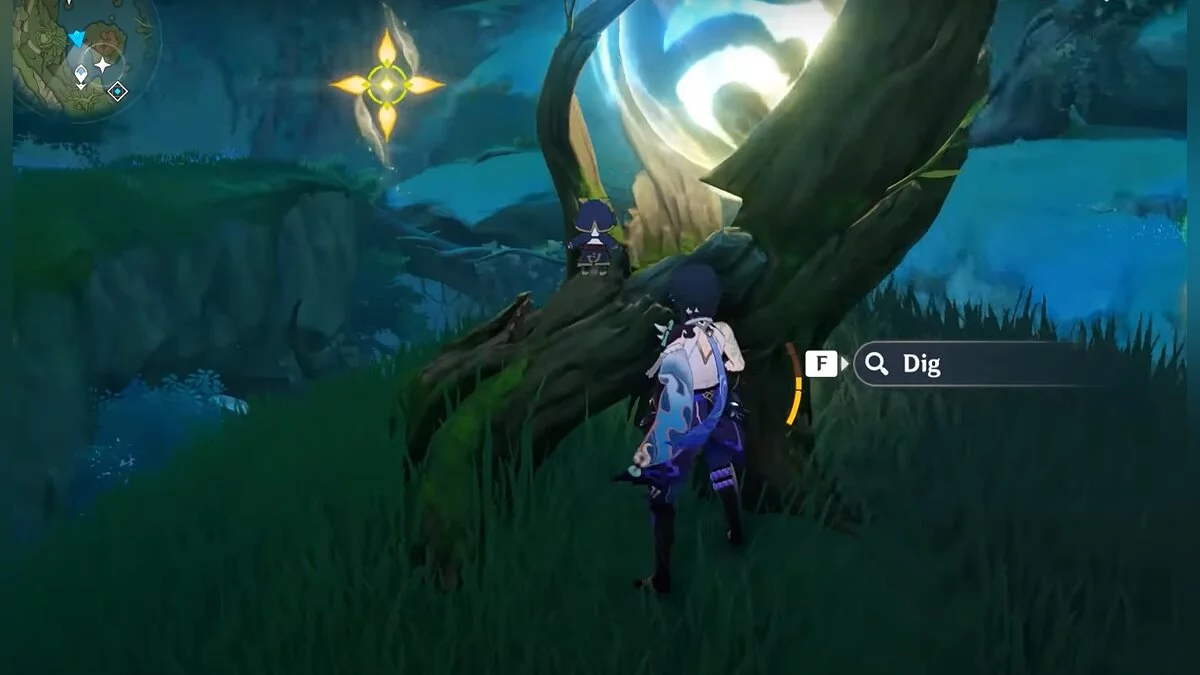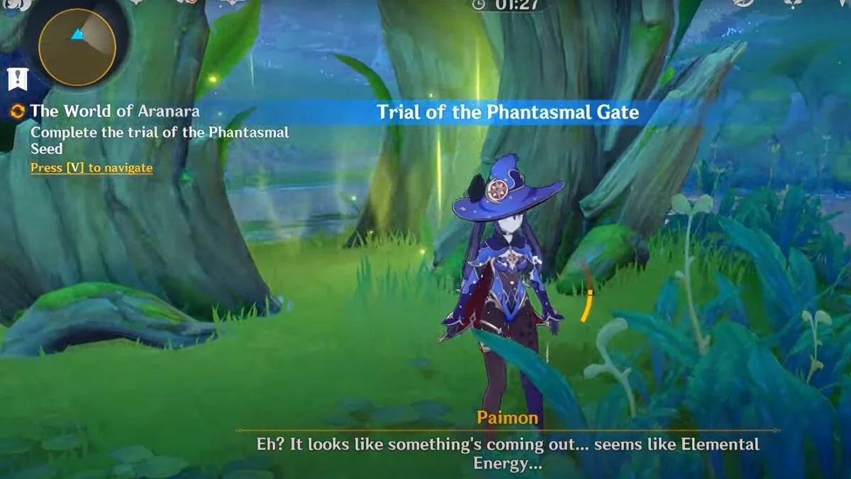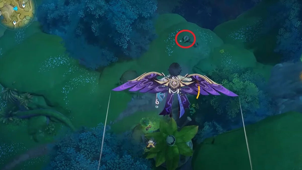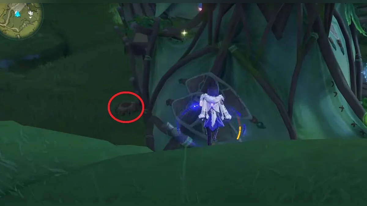 Для решения этой загадки вам потребуется Дендро-персонаж. Двигайтесь к точке на карте.