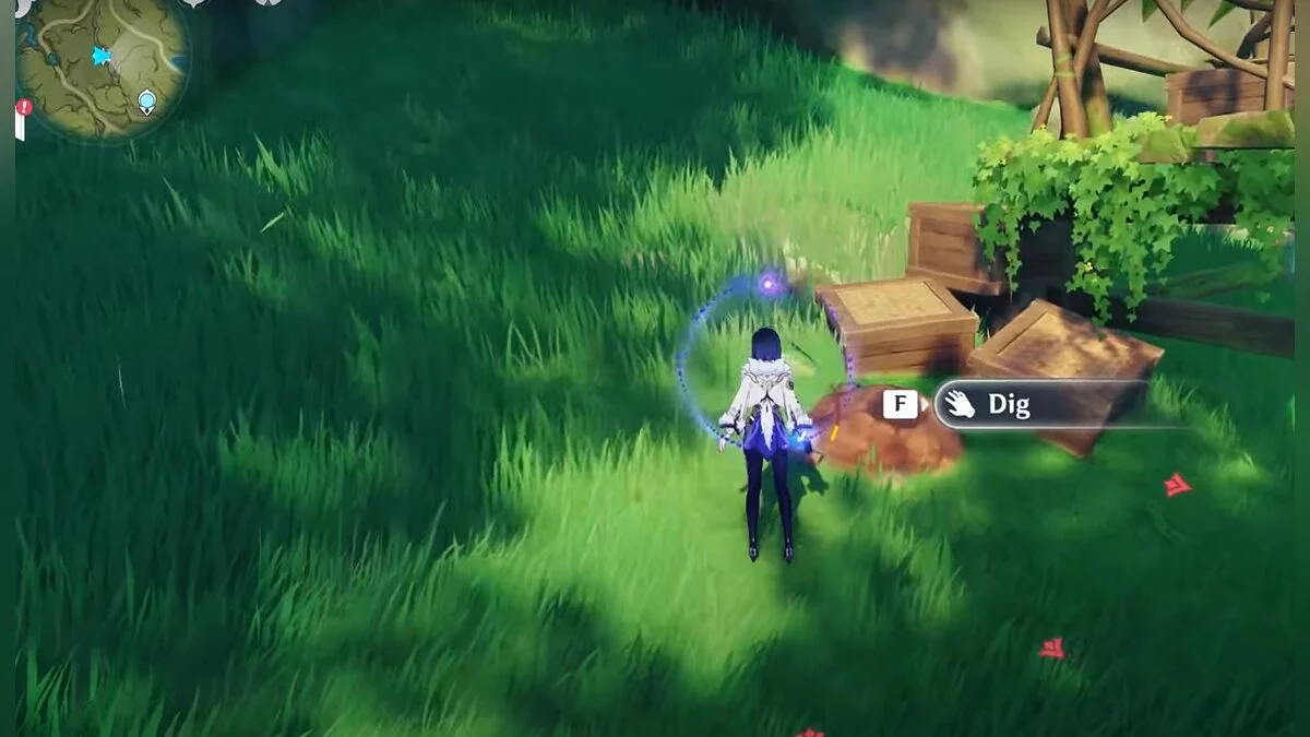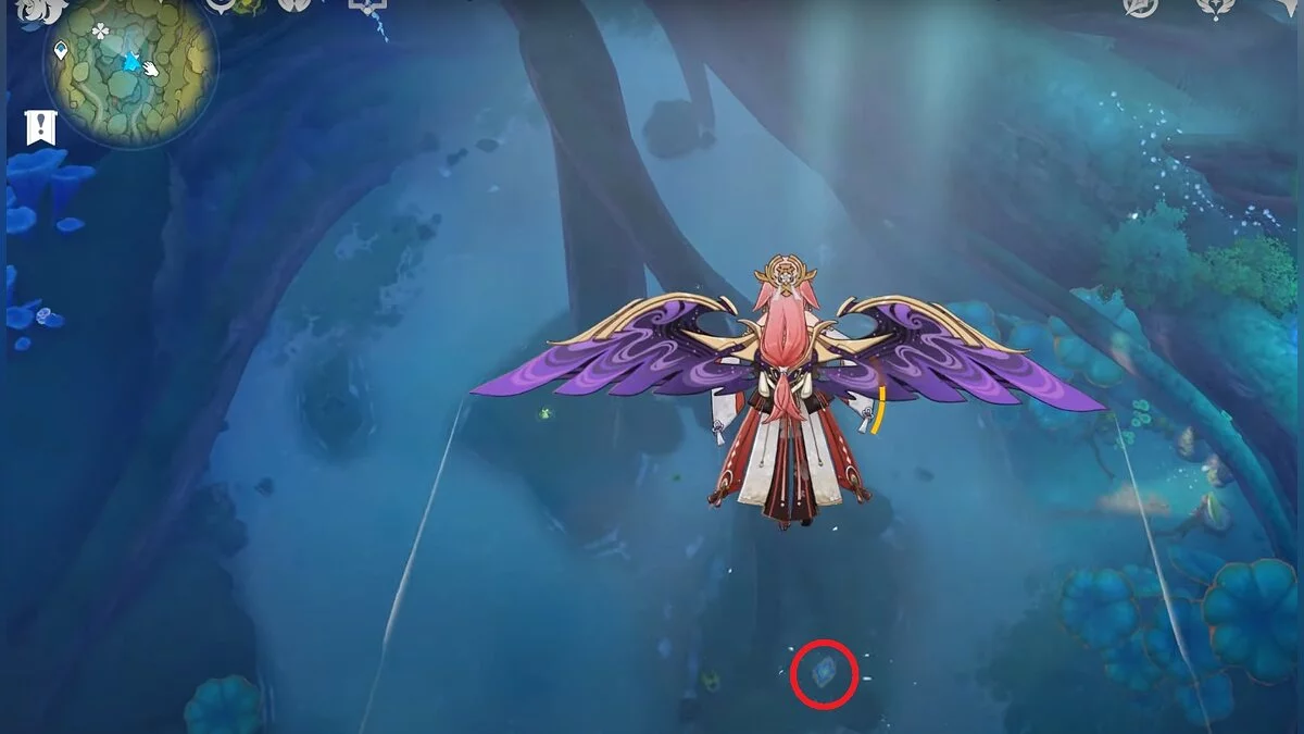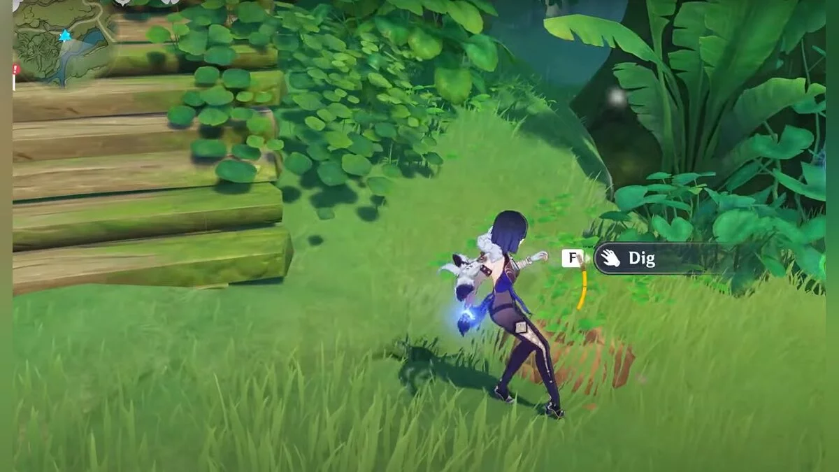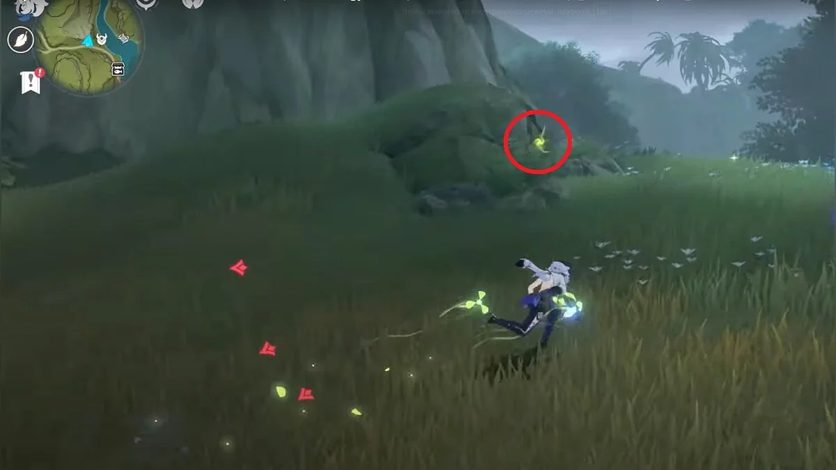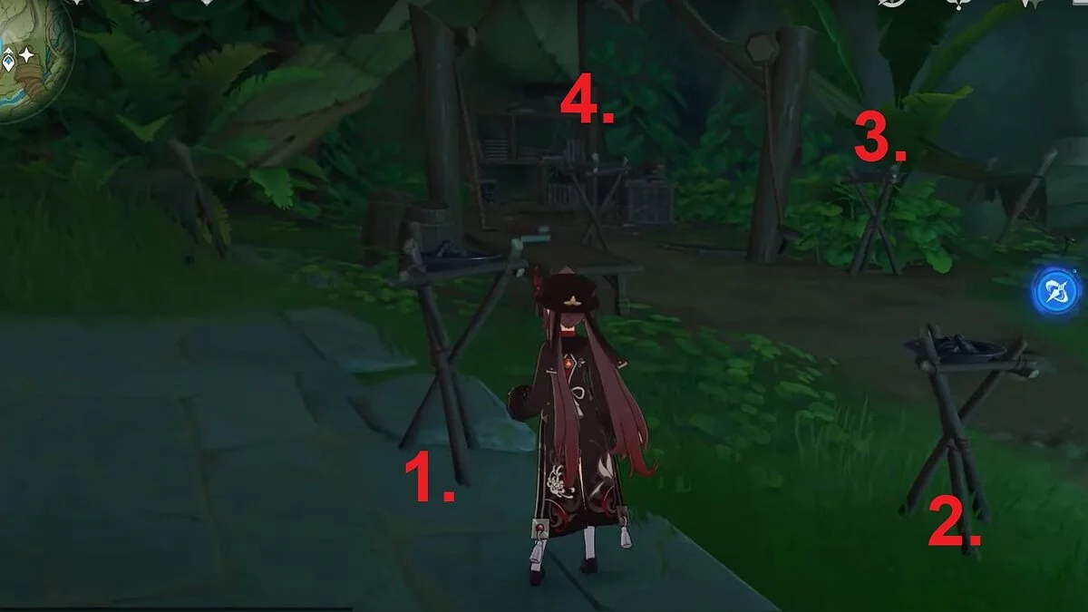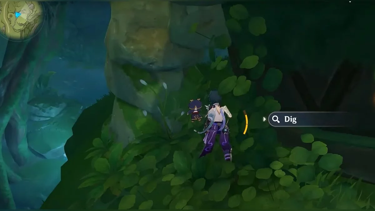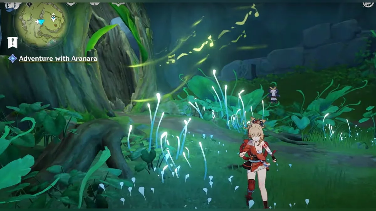 Для решения этой загадки вам потребуется Дендро-персонаж. Двигайтесь к точке на карте.