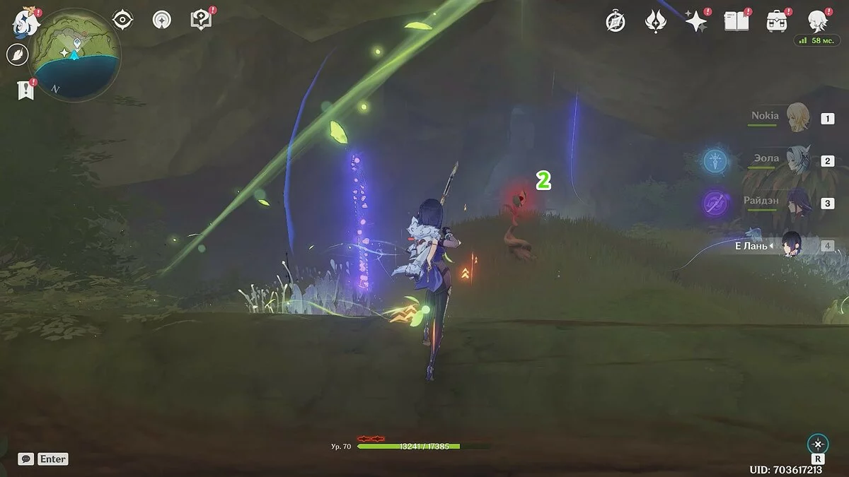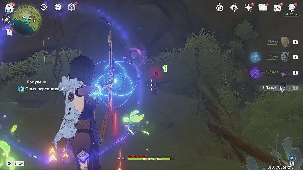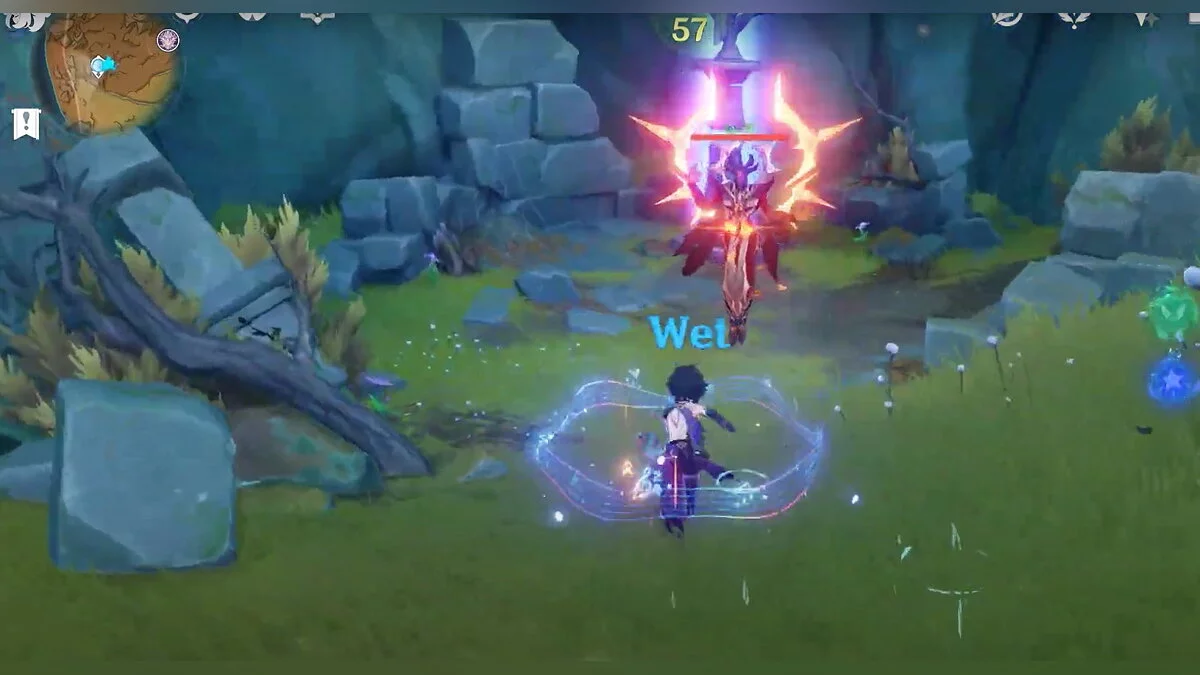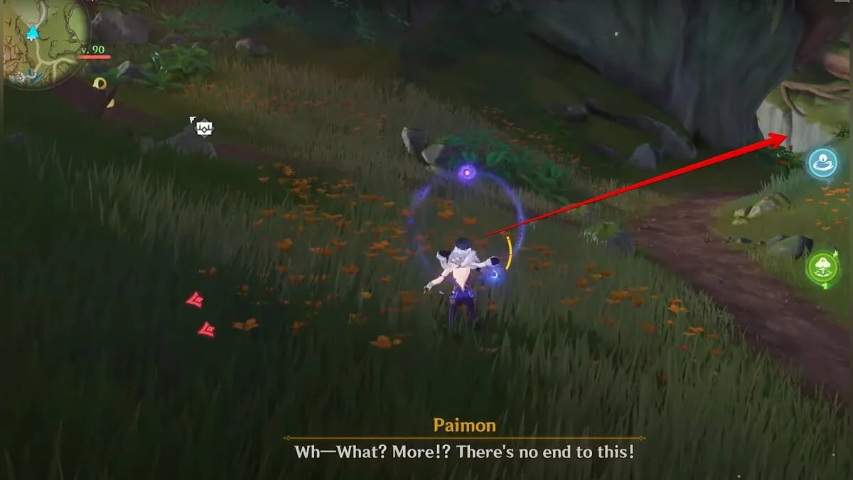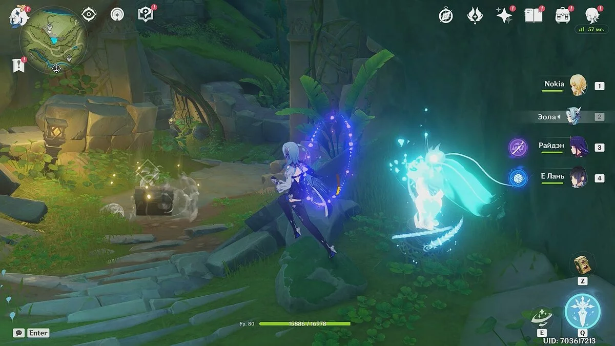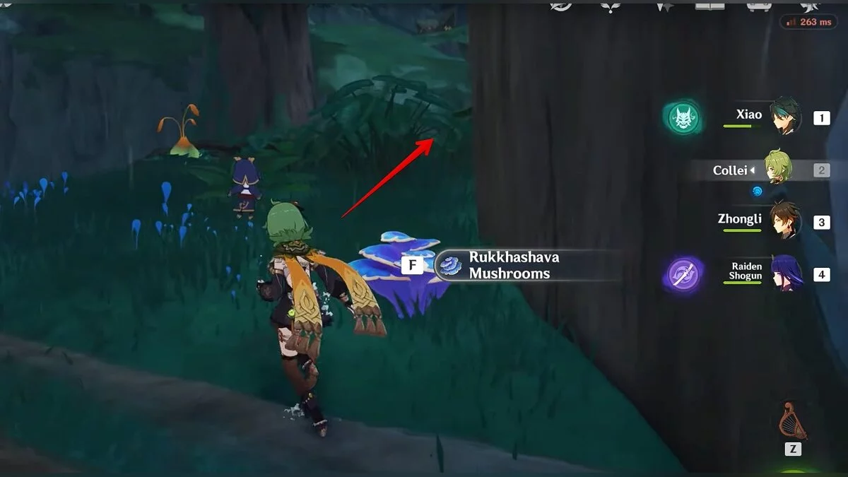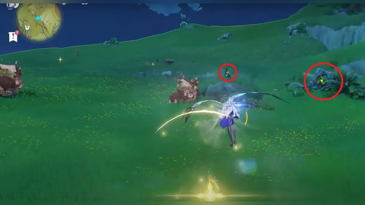 Здесь вам предстоит решить несложную головоломку. Переключитесь на Дендро-персонажа или возьмите дендрогранум, затем выстрелите по камню, который обвит лианами. Теперь вам нужно поразить мишени справа и слева от него.