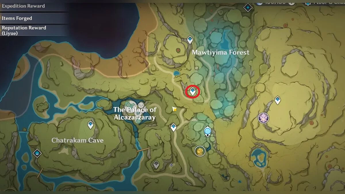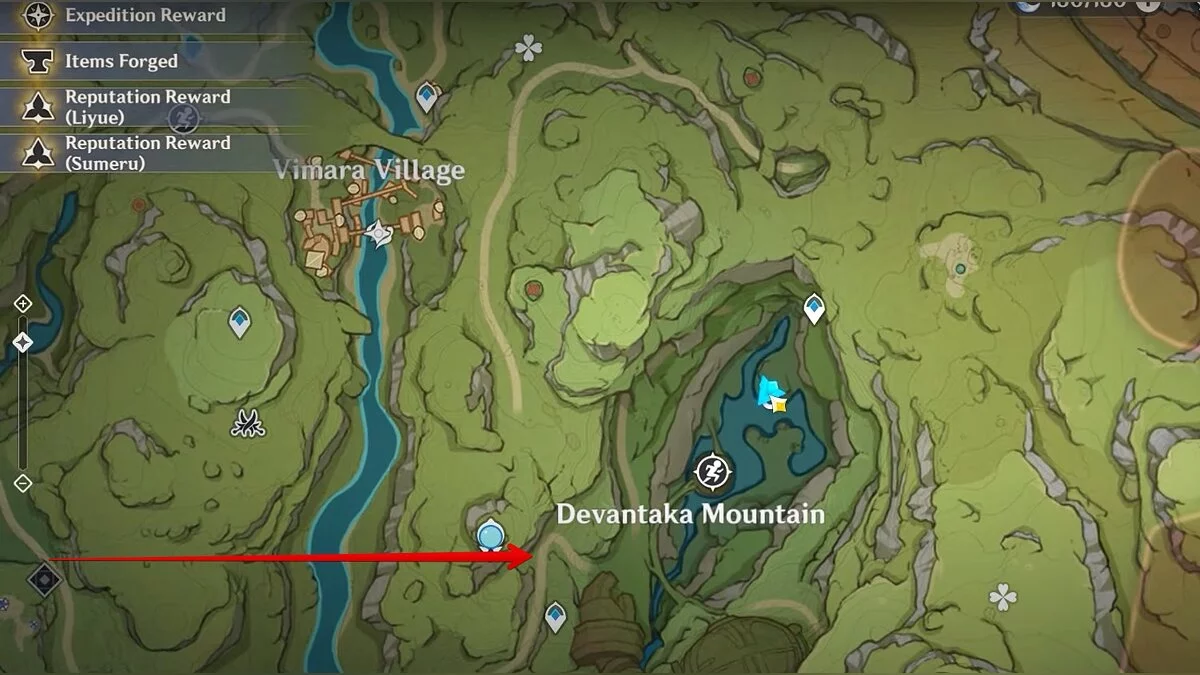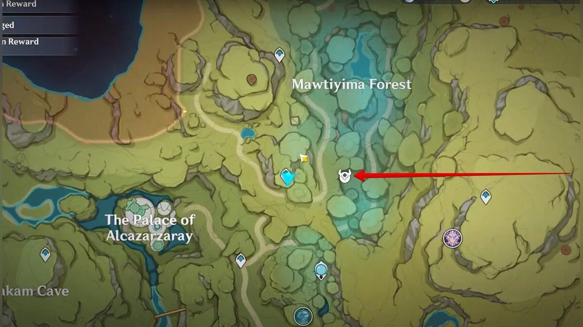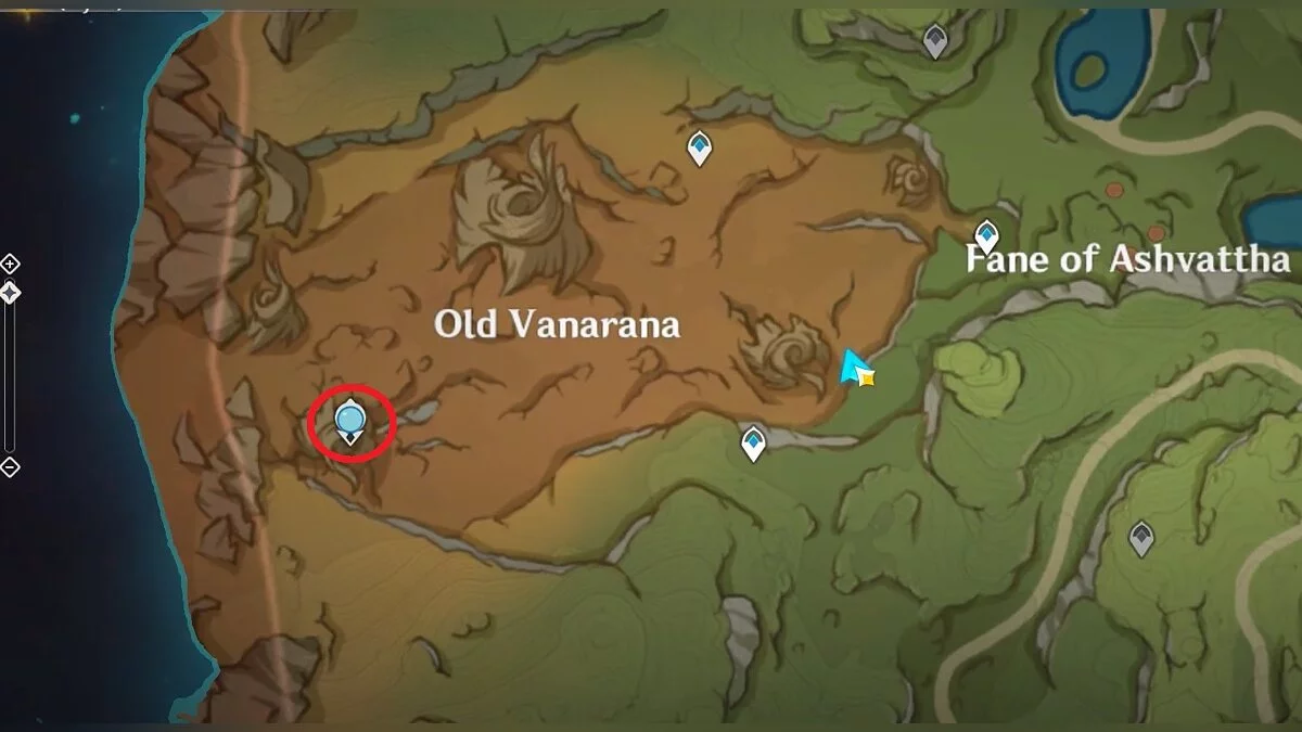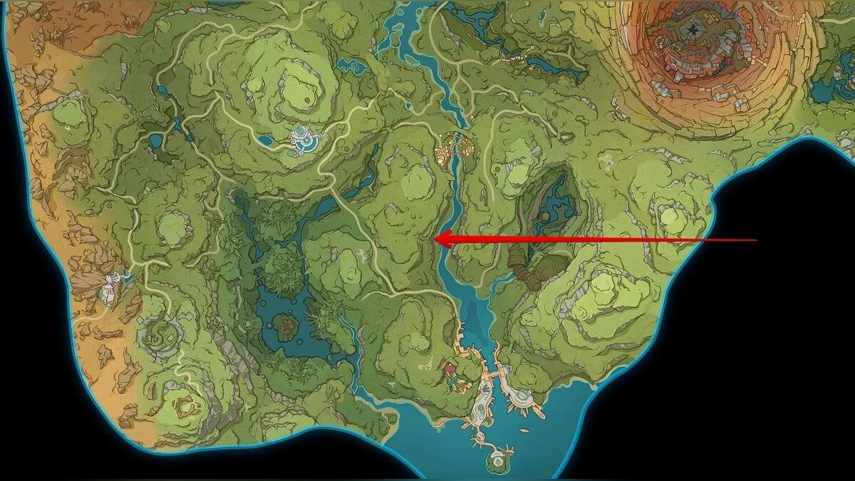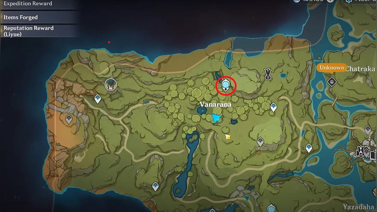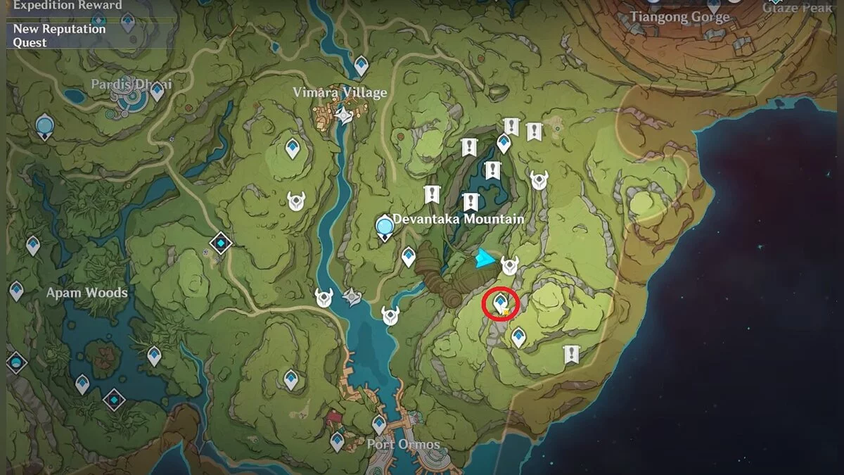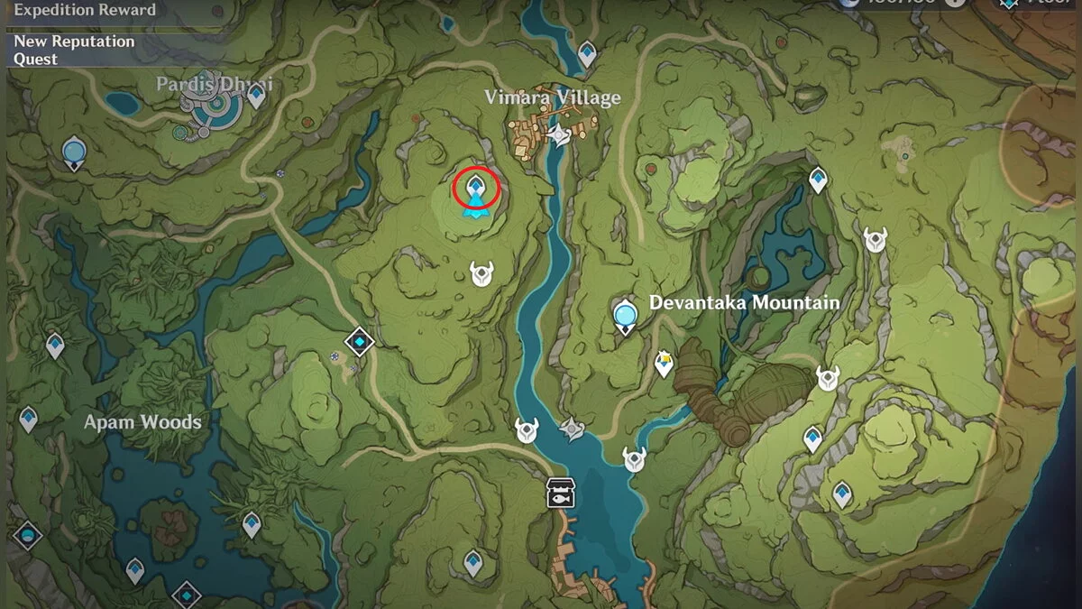 Отправляйтесь на север от статуи Дендро Архонта и доберитесь до значка телепорта. Если вы не были здесь ранее, то точка телепортации будет неактивна. Следуйте по дороге и найдите вход в пещеру.