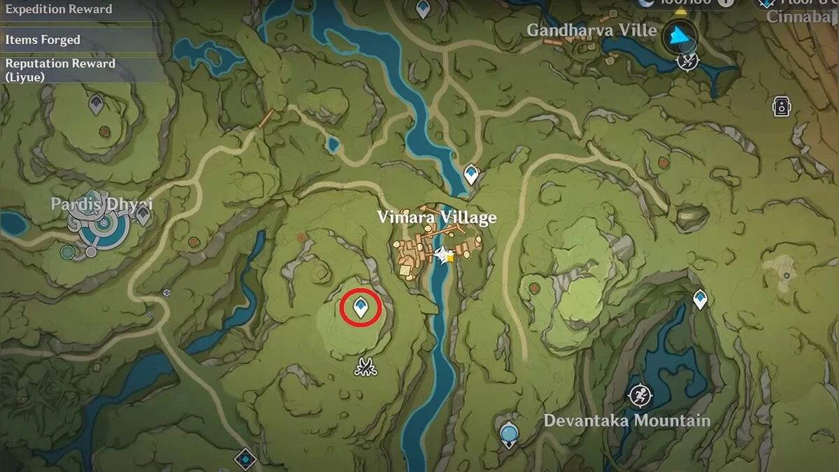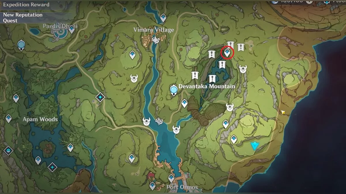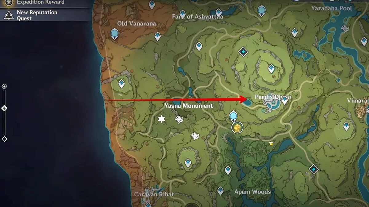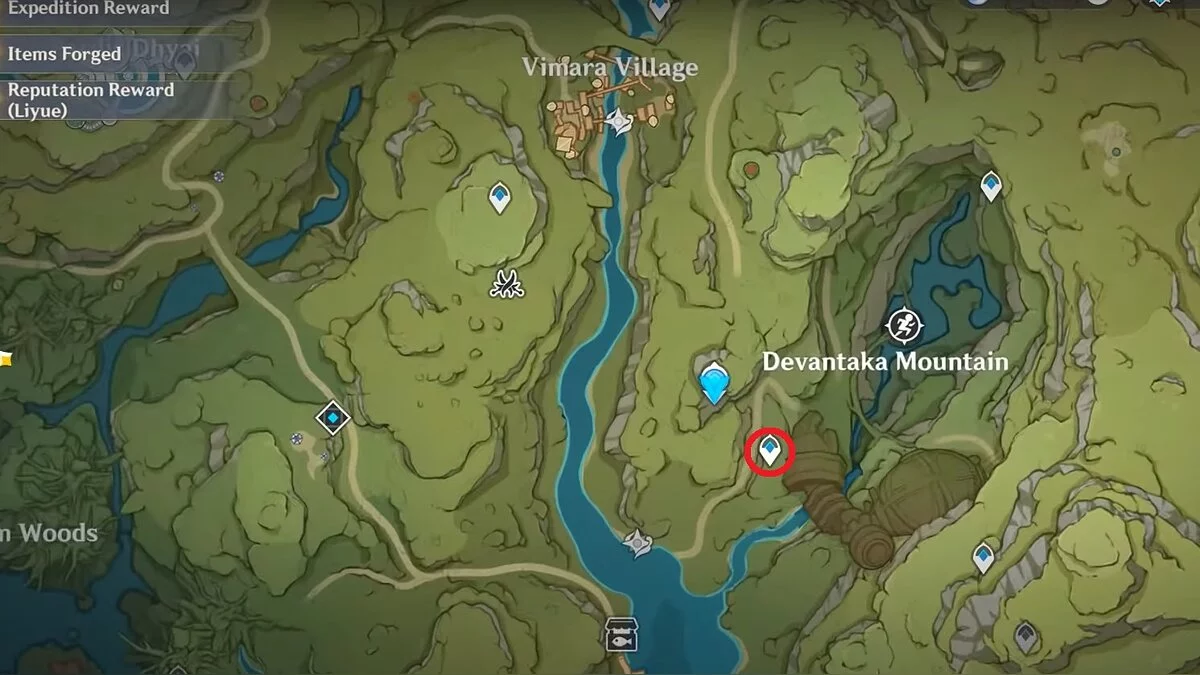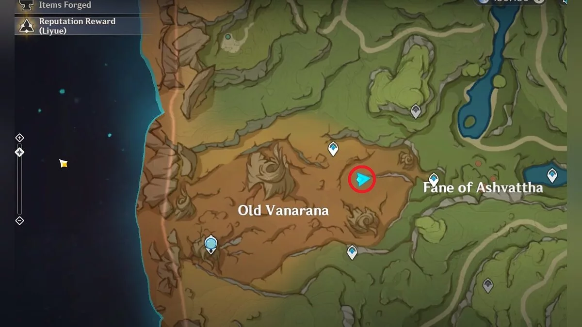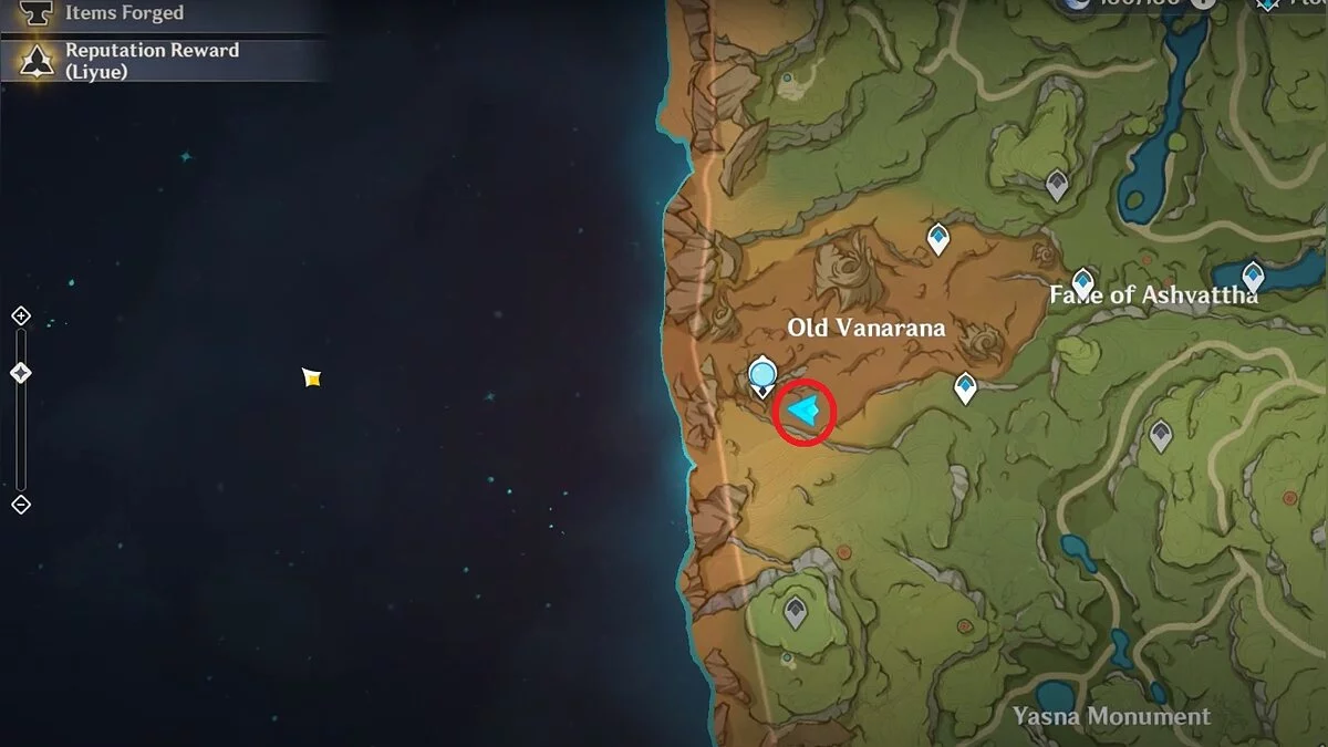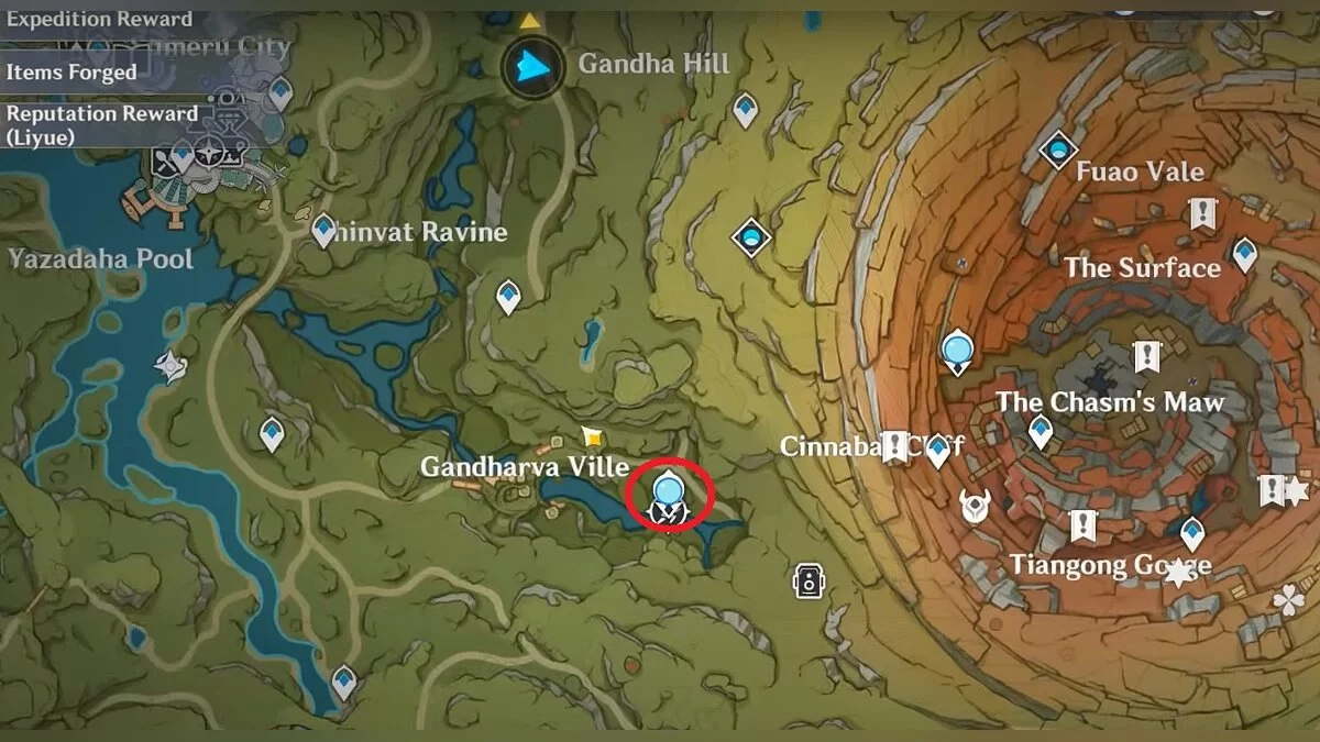 Отправляйтесь на север от статуи Дендро Архонта и доберитесь до значка телепорта. Если вы не были здесь ранее, то точка телепортации будет неактивна. Следуйте по дороге и найдите вход в пещеру.