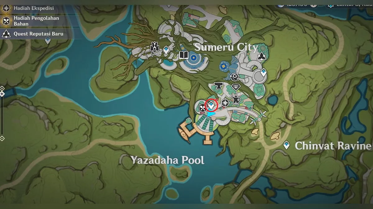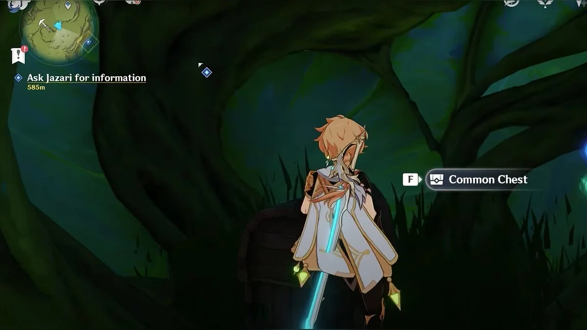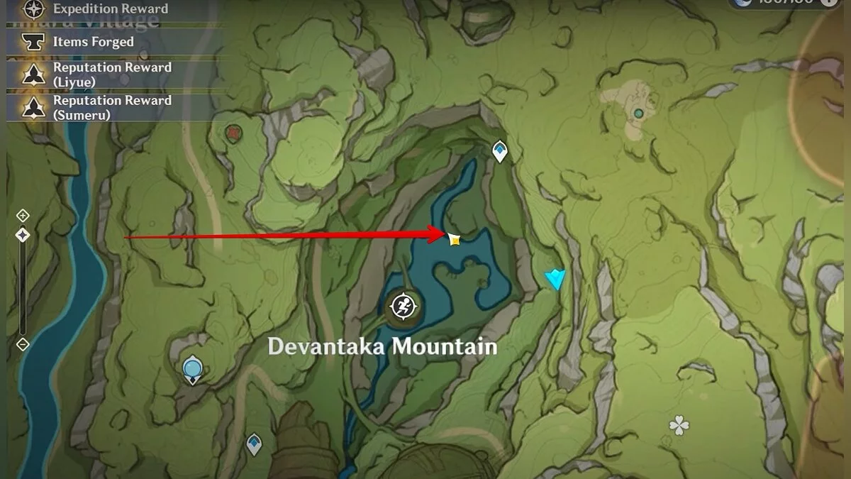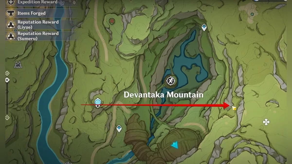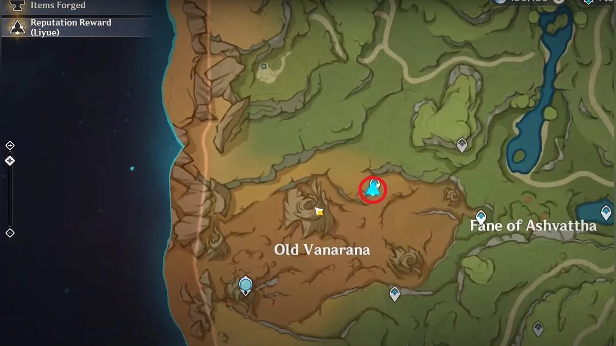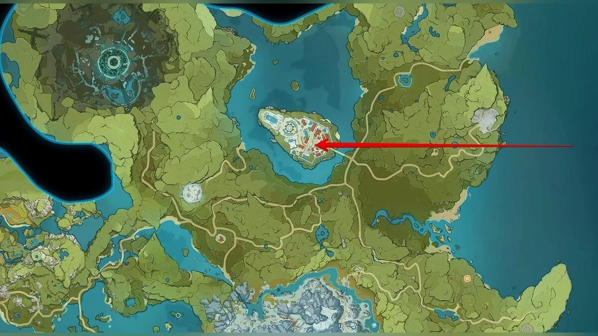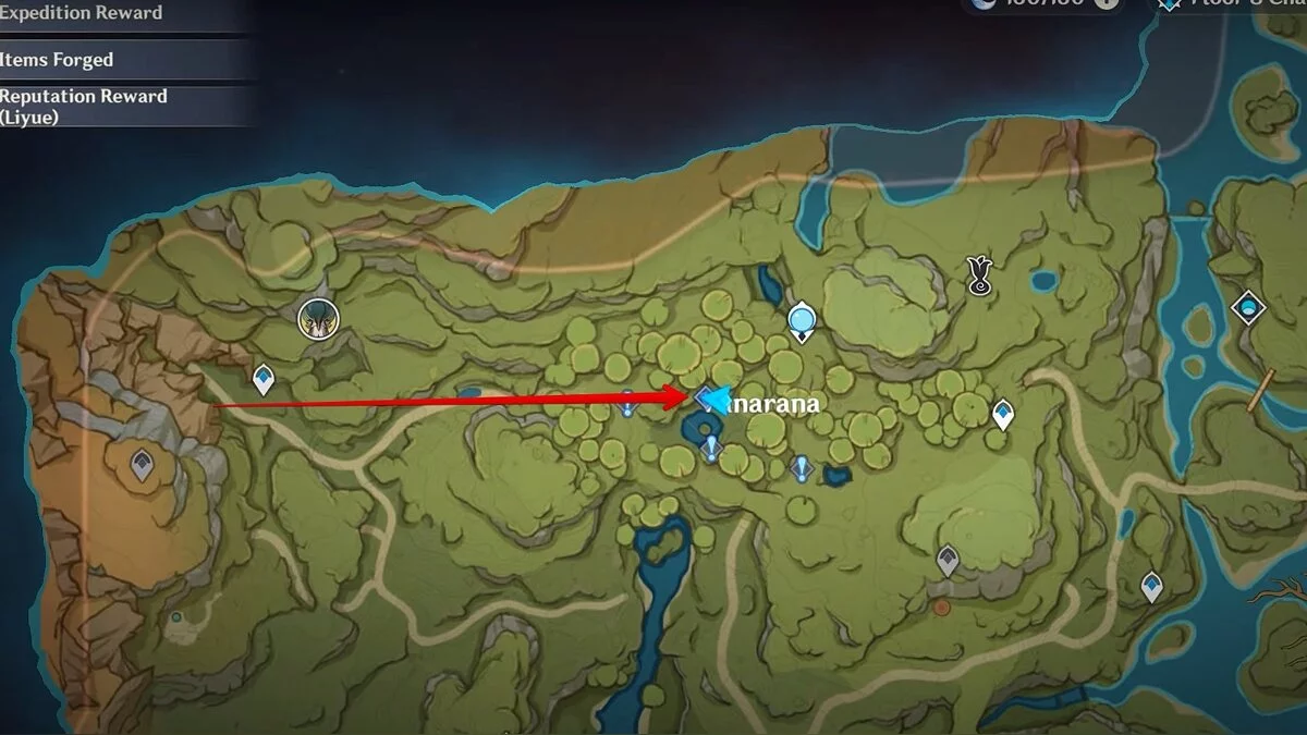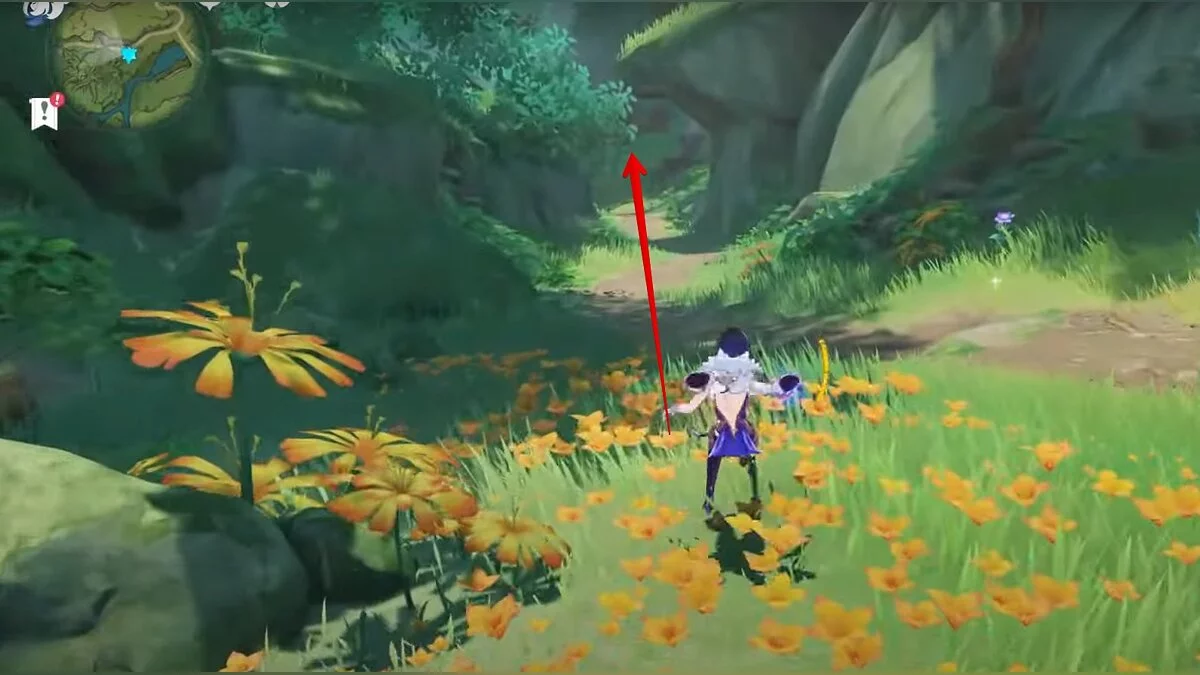 Отправляйтесь на север от статуи Дендро Архонта и доберитесь до значка телепорта. Если вы не были здесь ранее, то точка телепортации будет неактивна. Следуйте по дороге и найдите вход в пещеру.