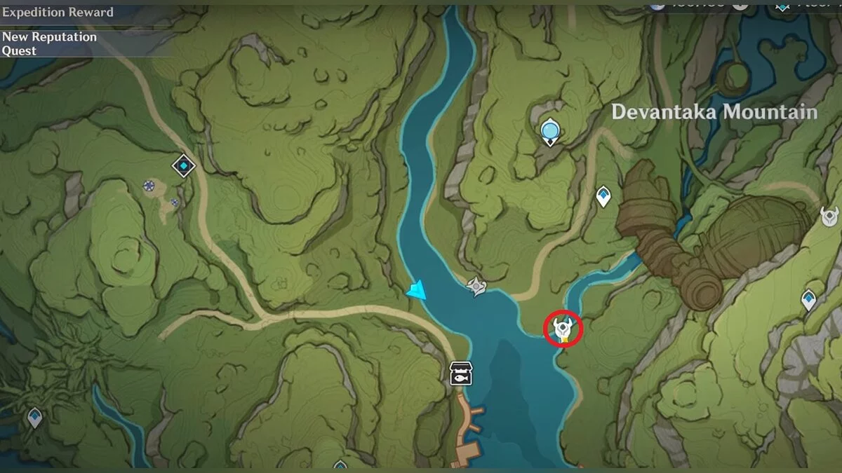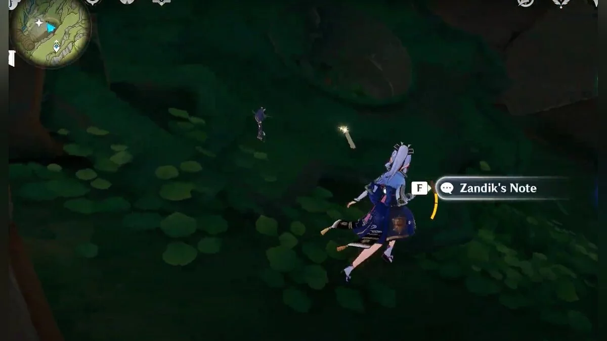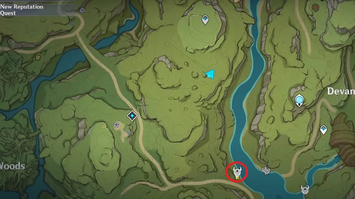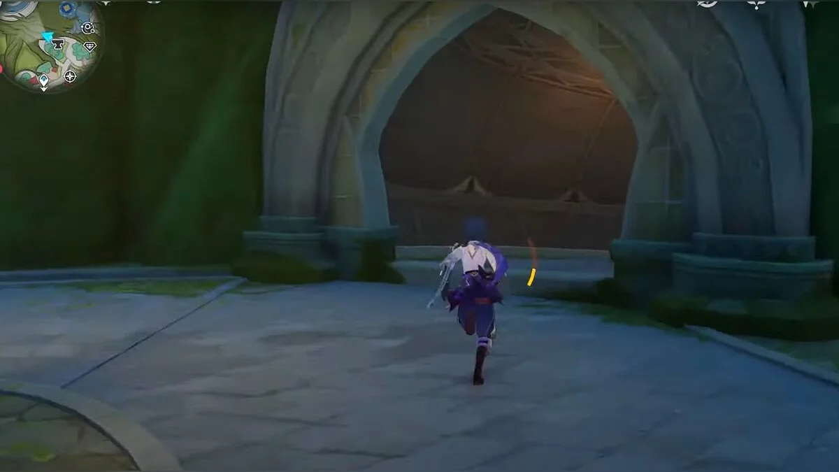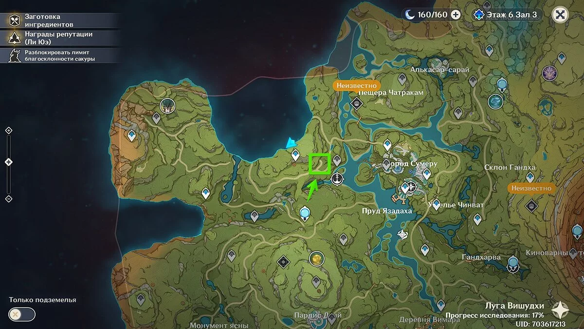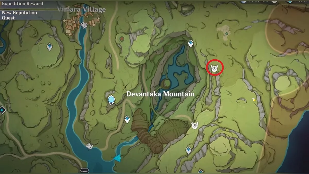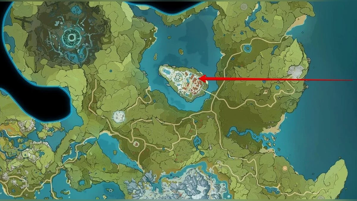 Отправляйтесь на север от статуи Дендро Архонта и доберитесь до значка телепорта. Если вы не были здесь ранее, то точка телепортации будет неактивна. Следуйте по дороге и найдите вход в пещеру.