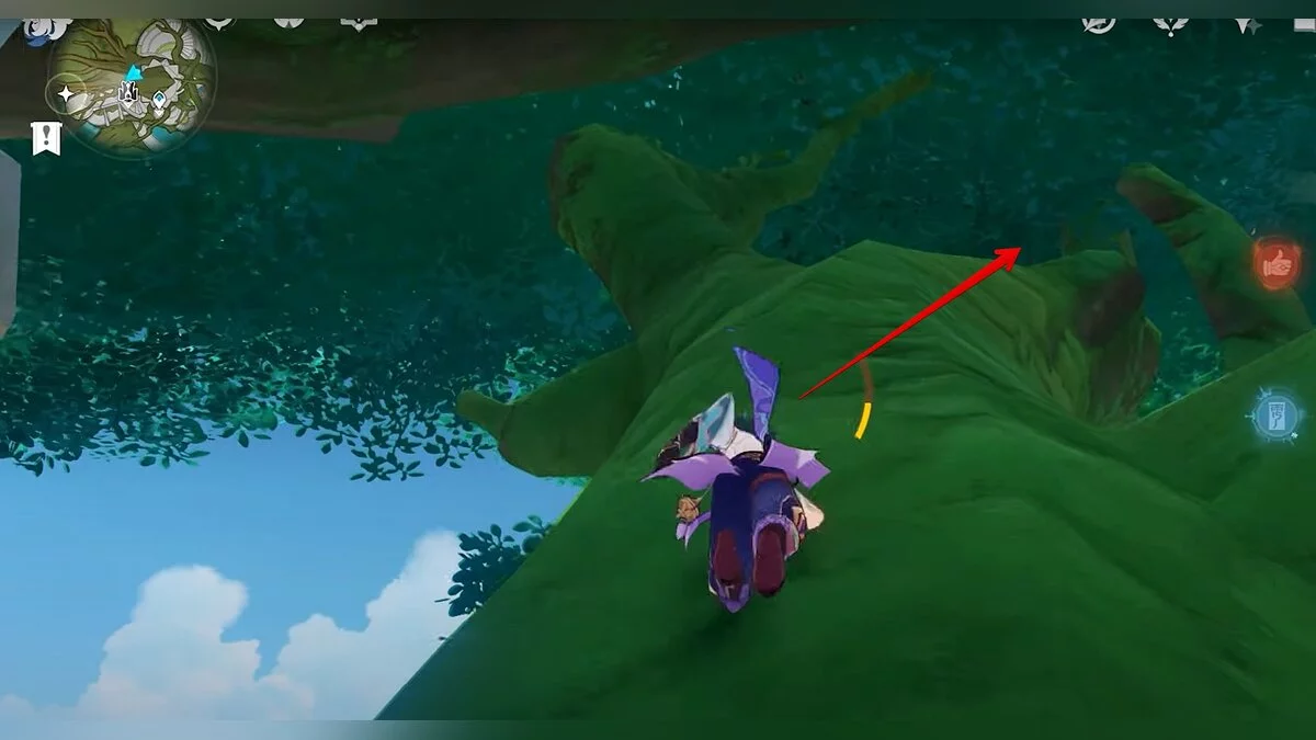 Поднимайтесь наверх, к храму, а затем по левой стороне забирайтесь на огромную ветку.
