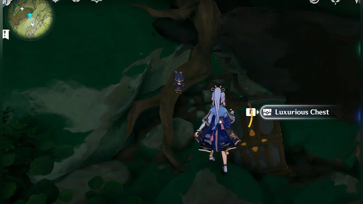 Развернитесь назад и бегите по коридору до упора. Среди корней вы найдёте роскошный сундук.