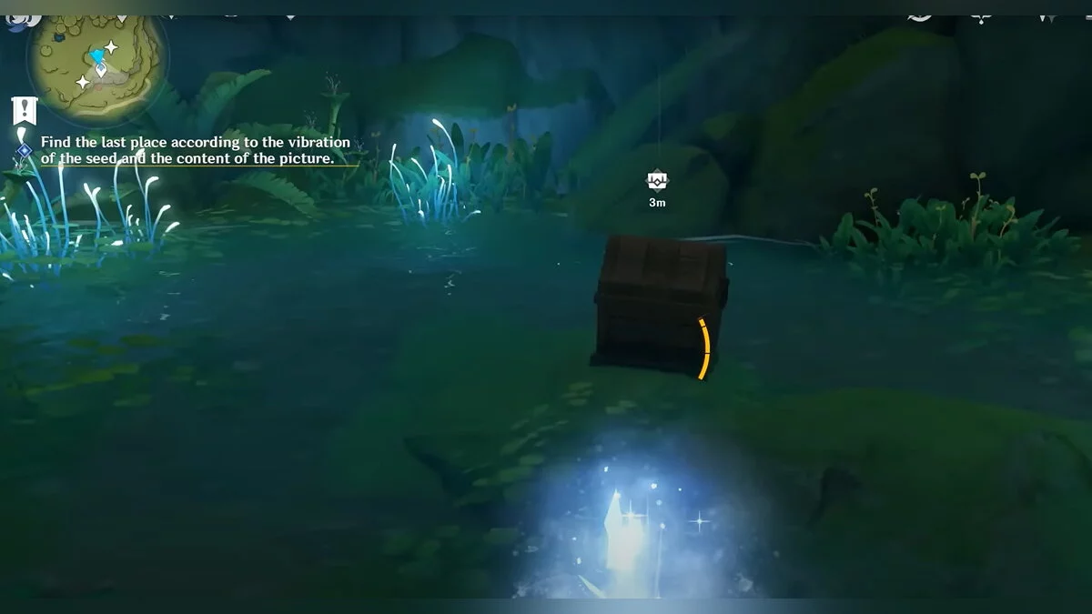 Когда соберёте все 15 семян, активируйте ворота. Таким образом, вы завершите испытание и получите драгоценный сундук/
