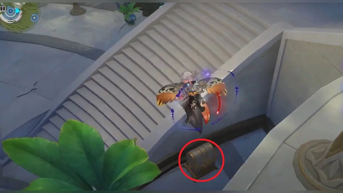 У входа вы можете заметить фею. Чтобы добраться до неё, заберитесь на скалу и спланируйте вниз. Проведите фею к статуе, чтобы получить обычный сундук.