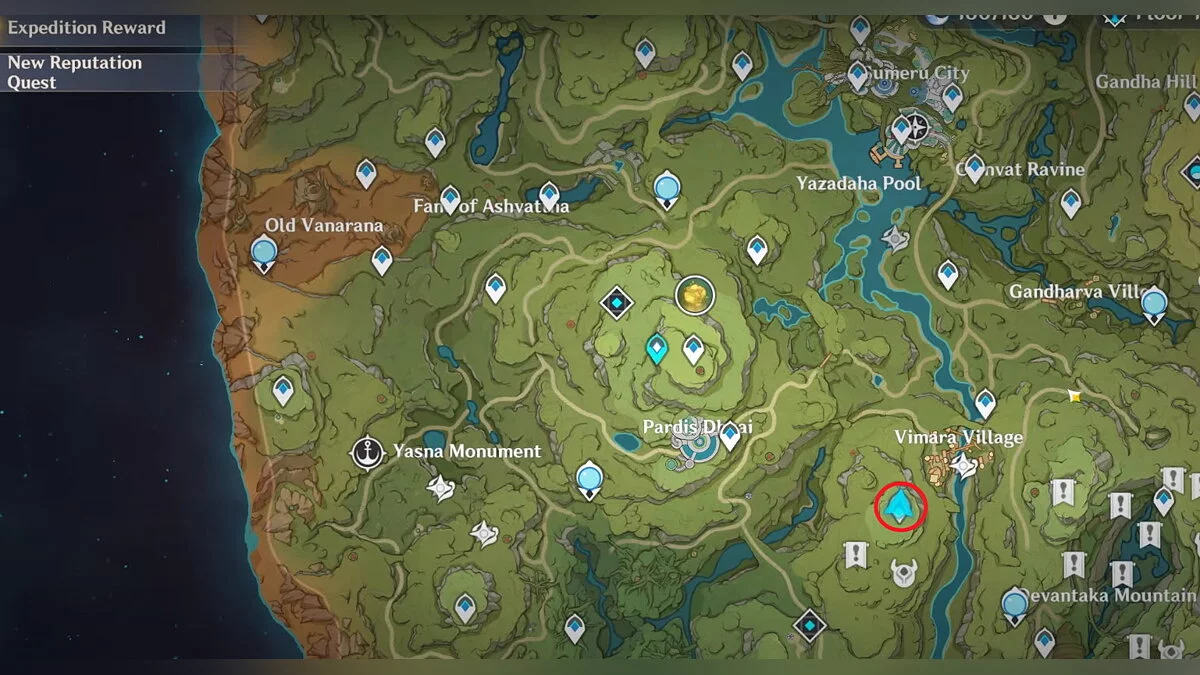 Вам нужно попасть на самую высокую точку в регионе. Для начала телепортируйтесь в город Сумеру.