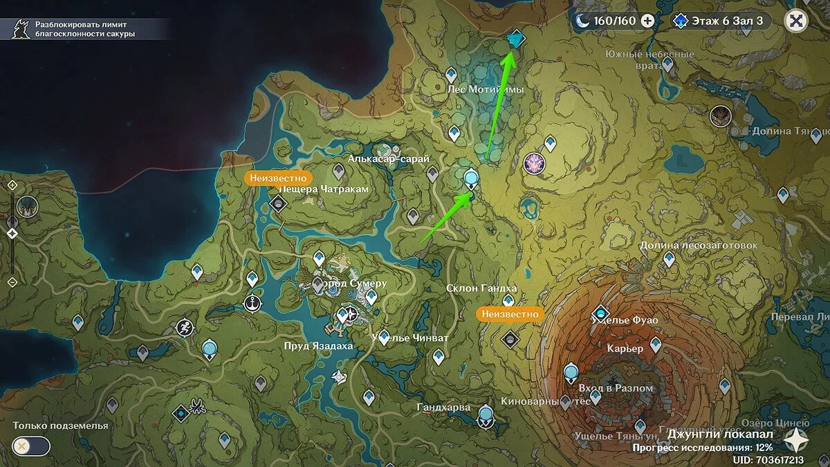 Подземелье находится на юге леса Мотиймы. Чтобы попасть сюда, придётся добраться до статуи Дендро Архонта, что на северо-востоке от города Сумеру.