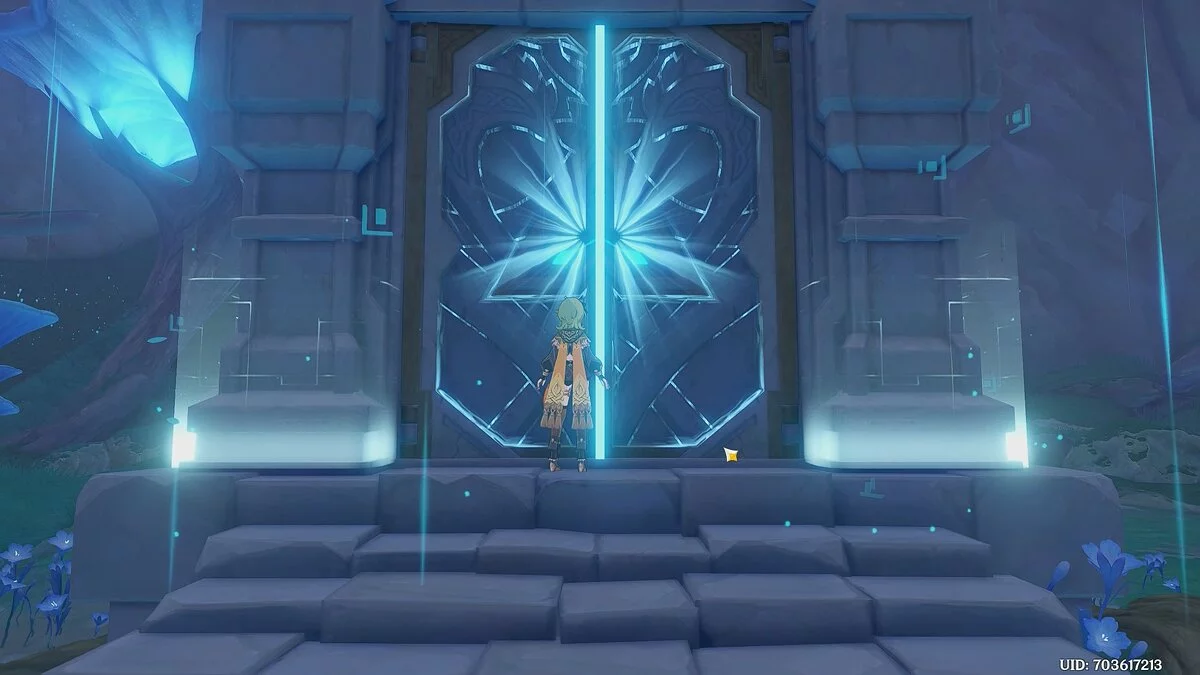На скриншоте выше постаменты активированы, но у вас они будут неактивны. Чтобы взаимодействовать с ними, придётся использовать героя соответствующей стихии. Если вы прошли квест «Отвергнутая игрушка» в событии «Детская сказка», то наверняка получили бесплатного Дендро-персонажа — Коллеи. Воспользуйтесь этим героем, чтобы взаимодействовать со статуями.