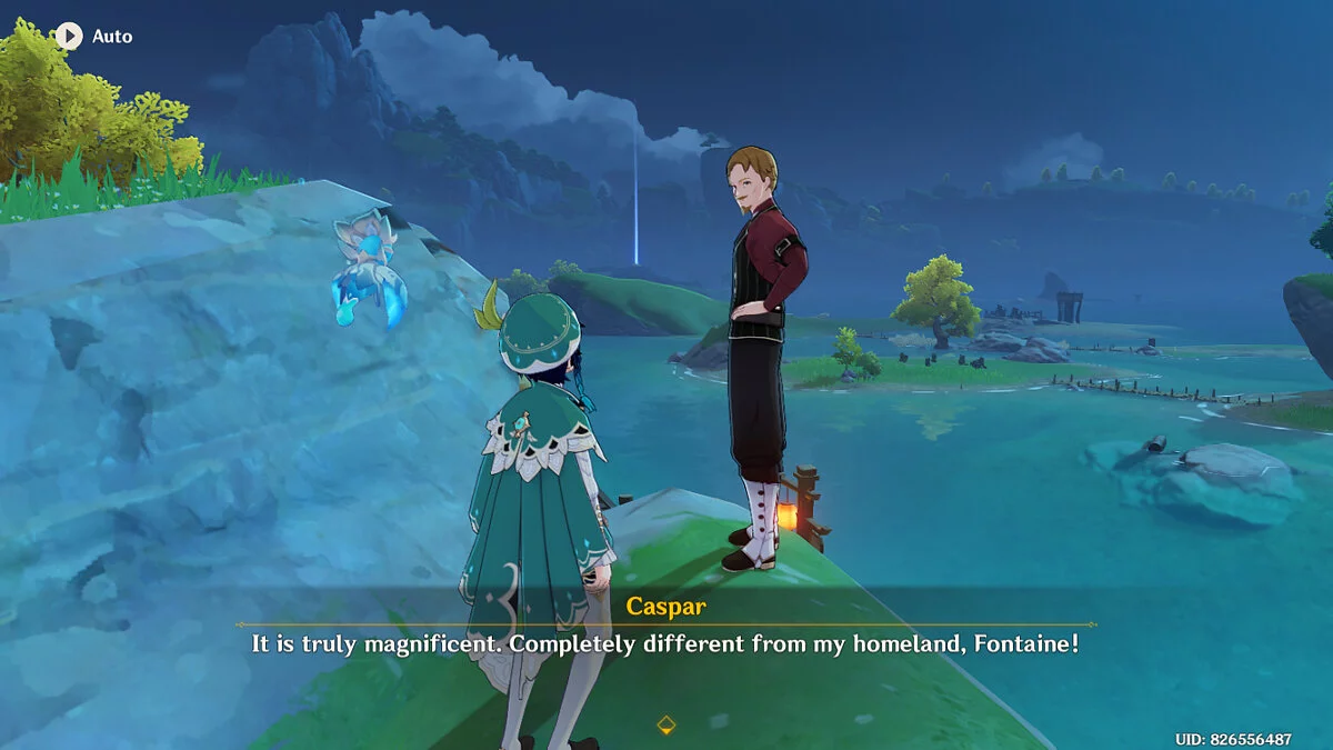 - Каспар — находится возле таверны Ваншу в Ли Юэ. Персонаж говорит, что местные виды совсем не похожи на Фонтейн;