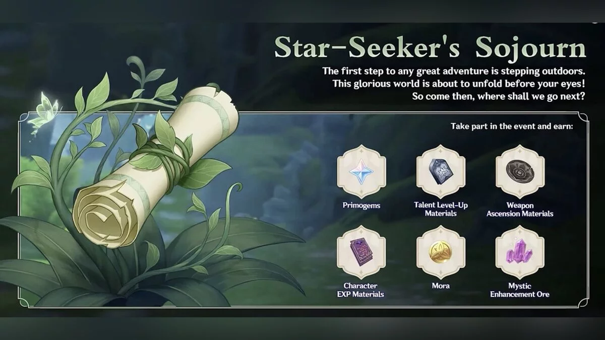 Ещё одно событие — «Путешествие искателя звёзд». Игрокам выдадут специальный инструмент «Мудрость Бану», с помощью которого необходимо собрать в лесу шесть звёзд будущего. Наградой станет 420 камней истока. При приближении к звезде придется решить головоломку, за которую также полагается награда.