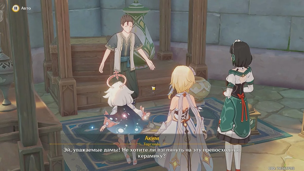 Вы получите достижение «Дух проникает сквозь материю» и отправитесь к Акиму, местному торговцу. Сетария начнёт задавать вопросы.