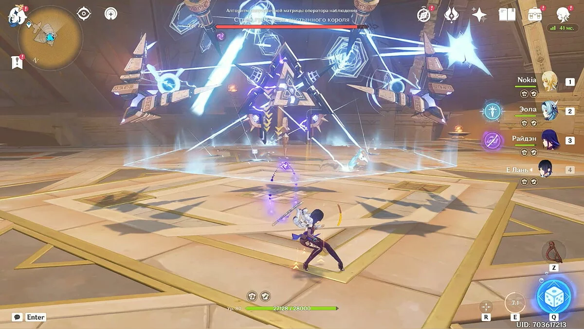В вашем отряде обязательно должен быть Электро-персонаж, ведь эта стихия выводит босса из состояния невидимости и временно парализует его. Помимо этого, желательно иметь в команде Дендро-героя для возникновения реакции Катализ (сочетание Дендро и Электро).