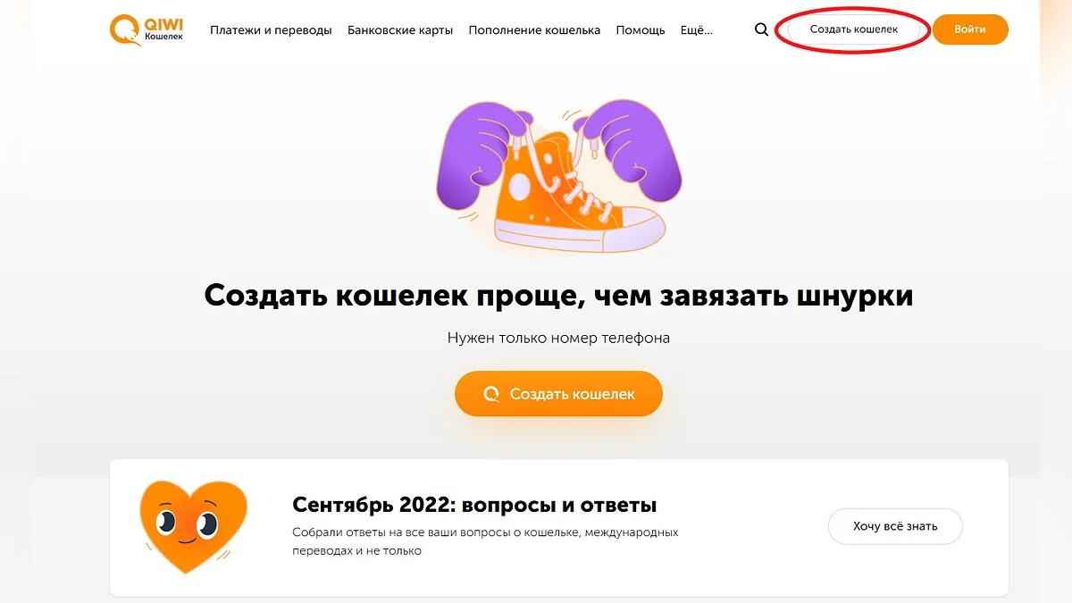 Откройте официальный сайт QIWI и зарегистрируйте новую учётную запись.