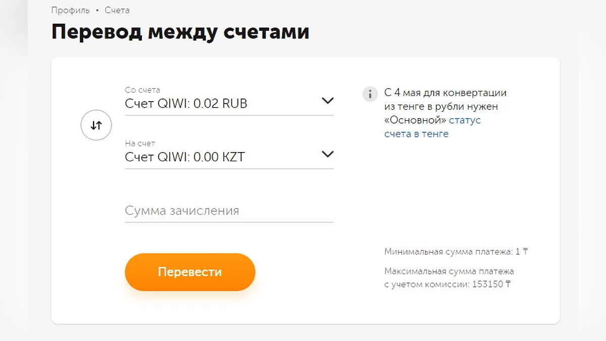 Переведите деньги с российского счёта на казахстанский.