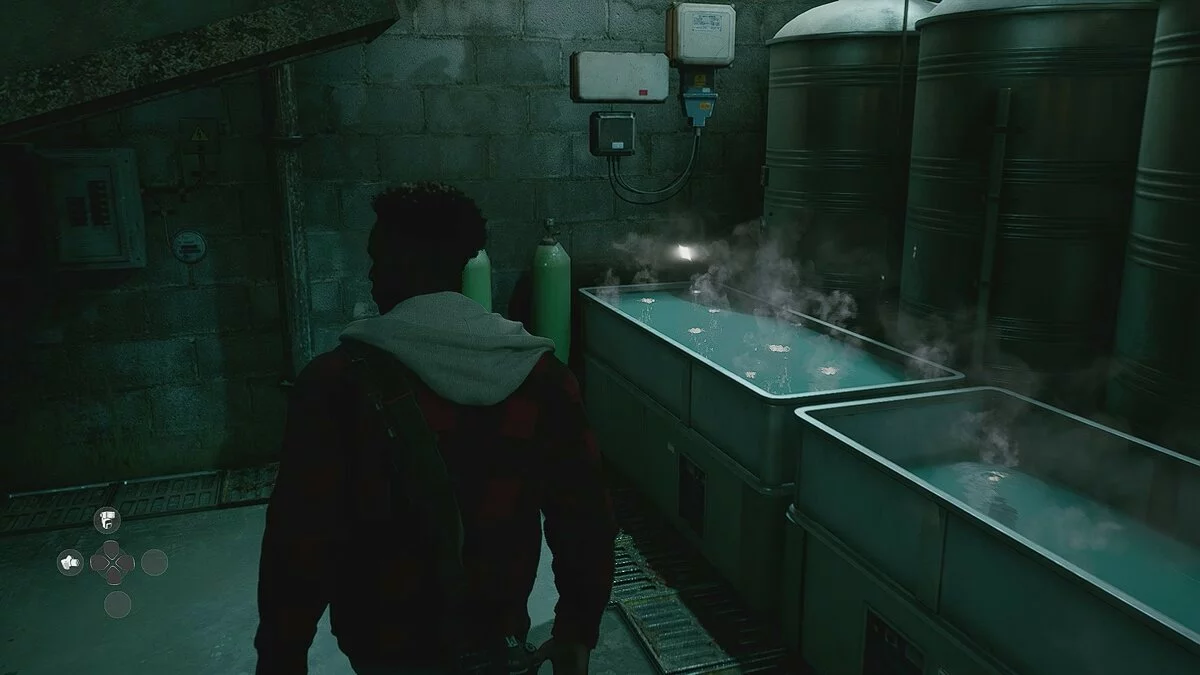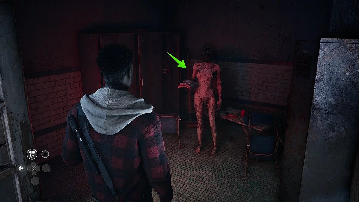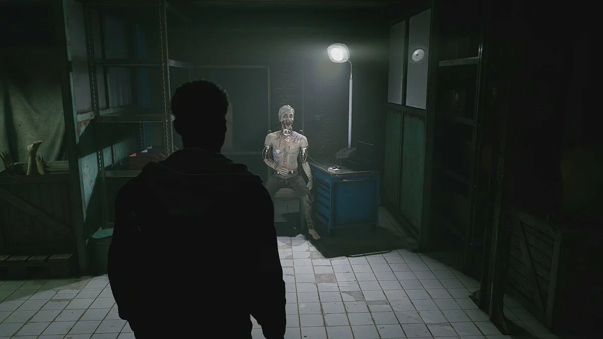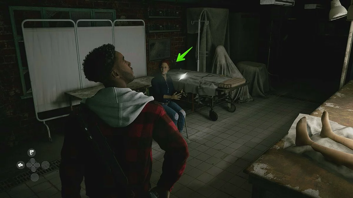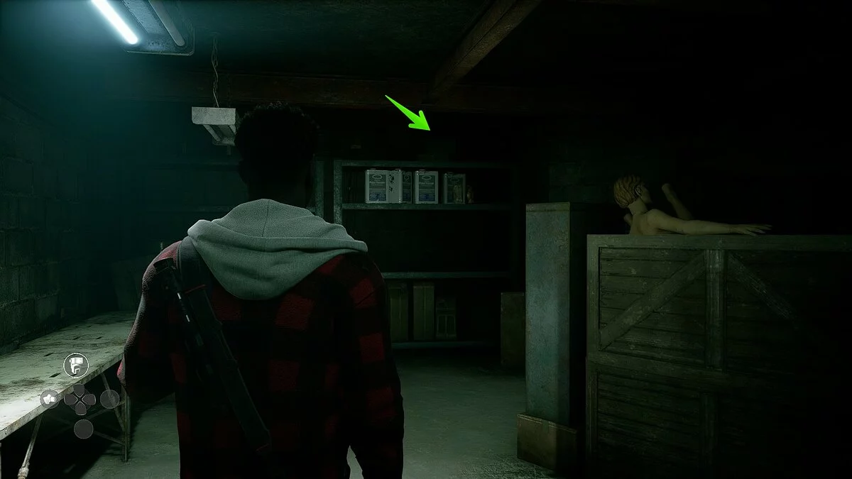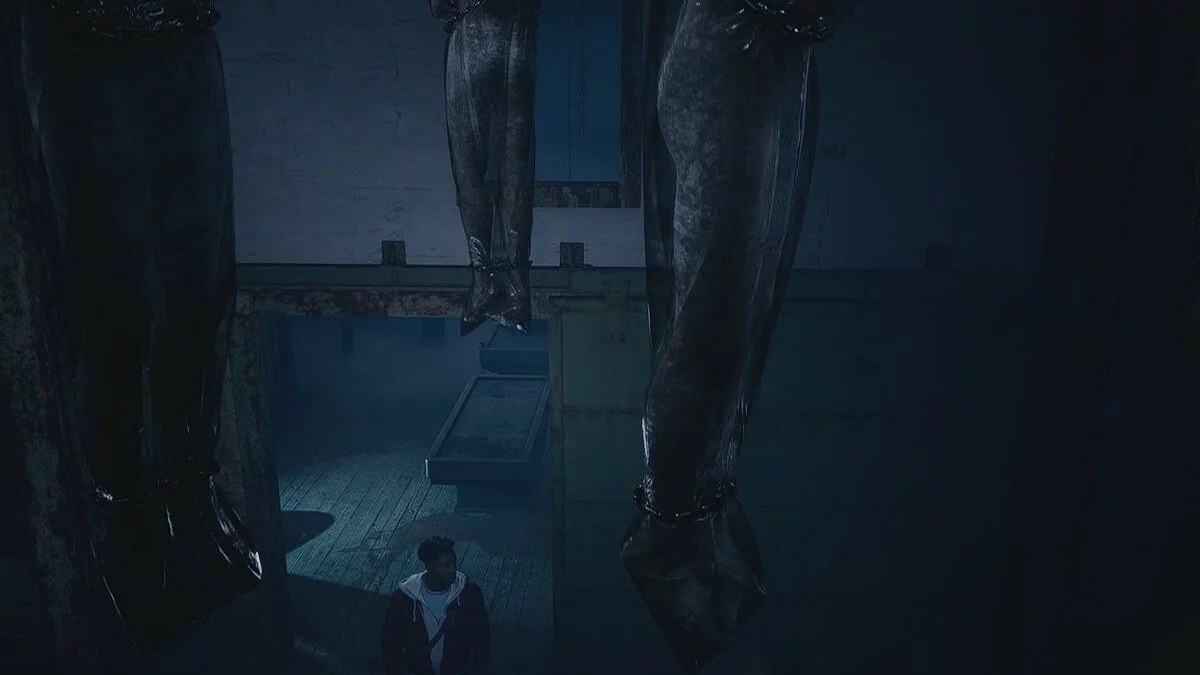 Спрячьтесь от маньяка и успешно пройдите QTE, чтобы разблокировать доступ в соседнее помещение. Здесь Марку бросятся в глаза несколько подвешенных трупов на потолке. Их можно сфотографировать.