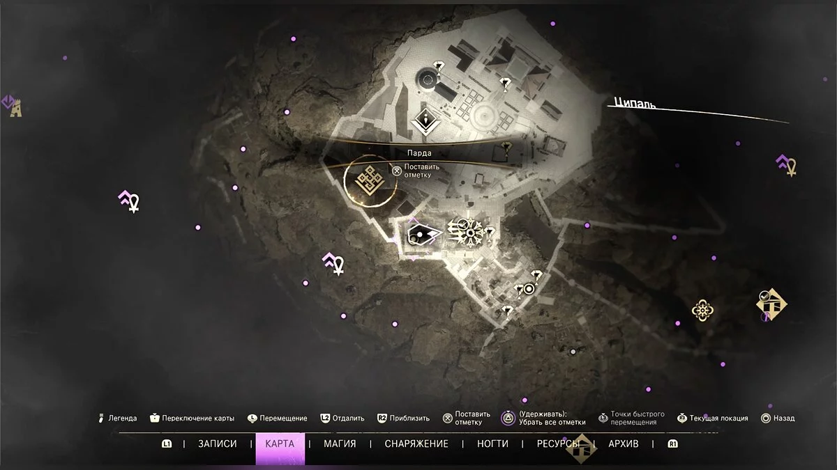 Теперь у вас есть время изучить Ципаль — город, где еще остались люди. Знаки вопроса — необязательные события и интересные диалоги, восклицательные знаки — побочные миссии.