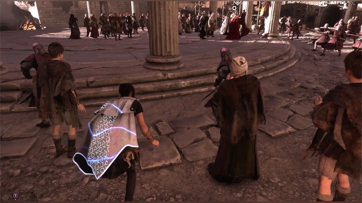На подступах к замку большая петляющая лестница, которая постепенно поднимается в гору. Там есть враги с баллистами, поэтому придется уворачиваться от снарядов. Оказавшись за крепостной стеной, вы попадете в город перед замком. Тут можно выбрать путь — в открытую или по скрытному проходу слева по скале. Мы так и не поняли чем эти пути отличаются, так как выбрали стелс и все равно пришли к главным воротам. Возможно, вы заметите то, что не увидели мы. У ворот ждет много противников: рыцари-изменники, рыцари со щитами и других.