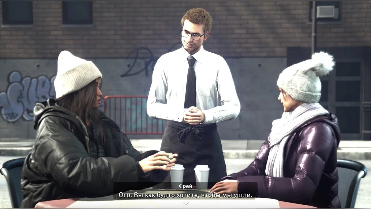 Очнувшись в квартире, осмотрите все доступные предметы. Фрей позвонит Оуден, после чего героиня пойдет на улицу. Посмотрев несколько коротких кат-сцен с уже знакомыми персонажами, вы в итоге окажетесь в кафе, где Фрей ждет мать. Посмотрите еще одну кат-сцену.