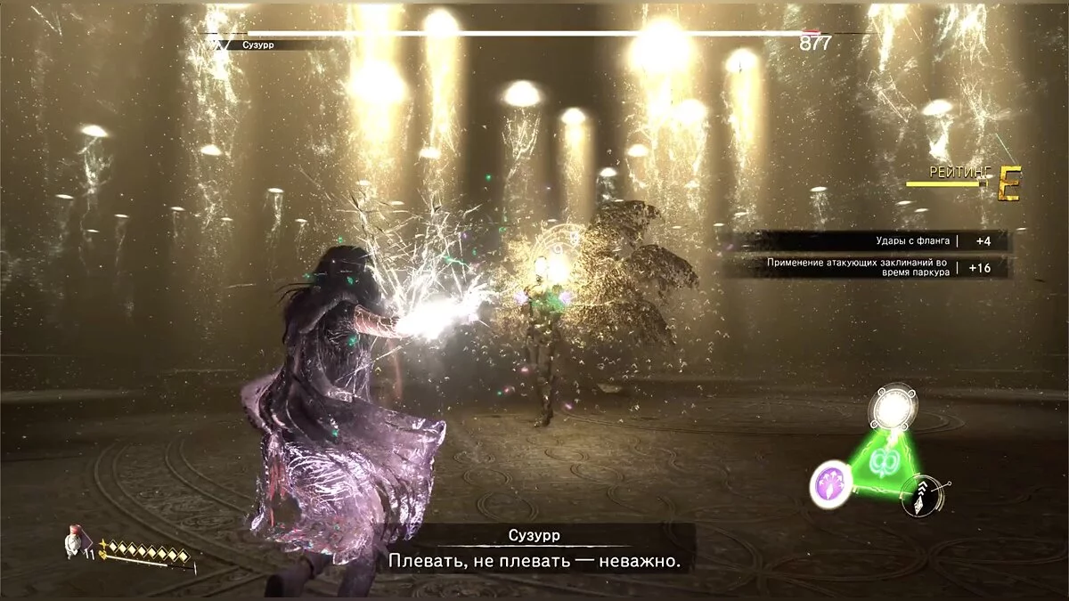 Демон пускает в Фрей мотыльков, от которых крайне сложно увернуться, а также стреляет энергетическим лучом. Спустя некоторое время тактика противника изменится. Сузурр начнет быстро телепортироваться и сразу же атаковать серией. Придется очень быстро уклоняться.