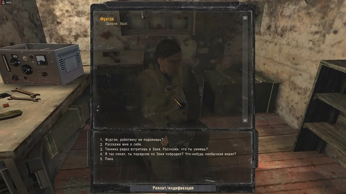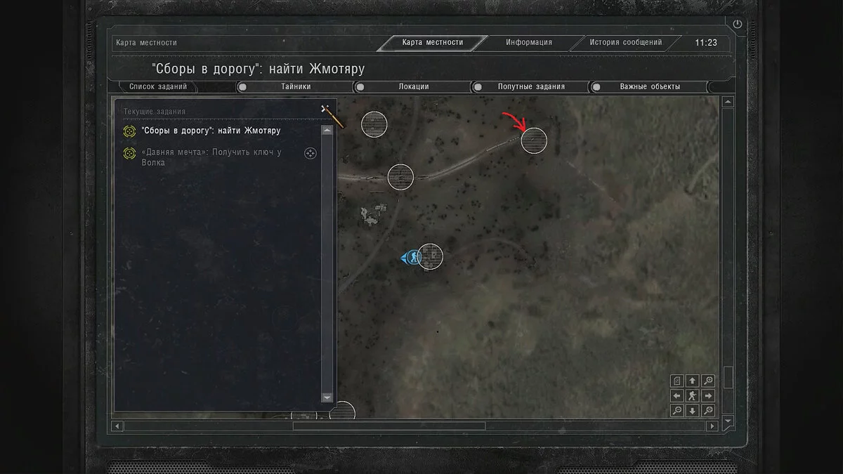 Найдите в лагере техника Ворона и отдайте ему водку. После посетите торговца Вавилона, а затем следуйте к Валету и разузнайте что-нибудь о Жмотяре. Снова возвращайтесь к Борову, а после выходите из лагеря и поговорите с Вованом.