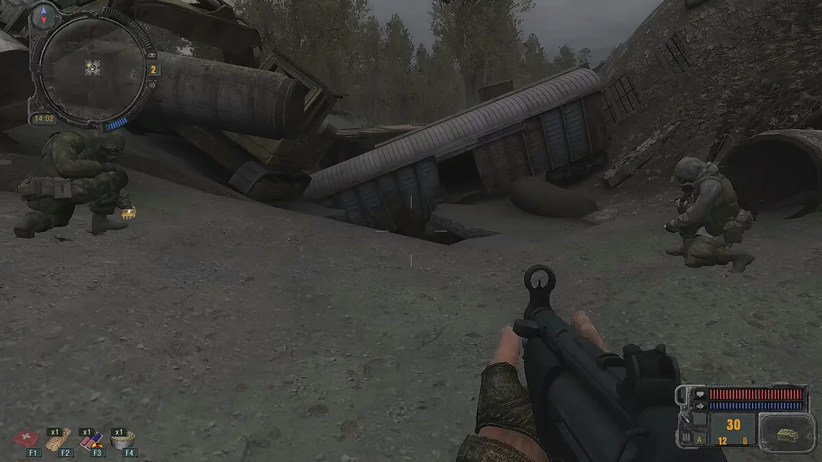 Когда сталкеры начнут изучать первую аномалию, вам нужно достать детектор аномалий и отыскать артефакт «Медуза». По пути ко второй аномальной зоне ваши спутники остановятся у тоннеля, где на героя нападут снорки. Уничтожьте мутантов и двигайтесь дальше за сталкерами. Затем будет еще один бой у железнодорожного моста.