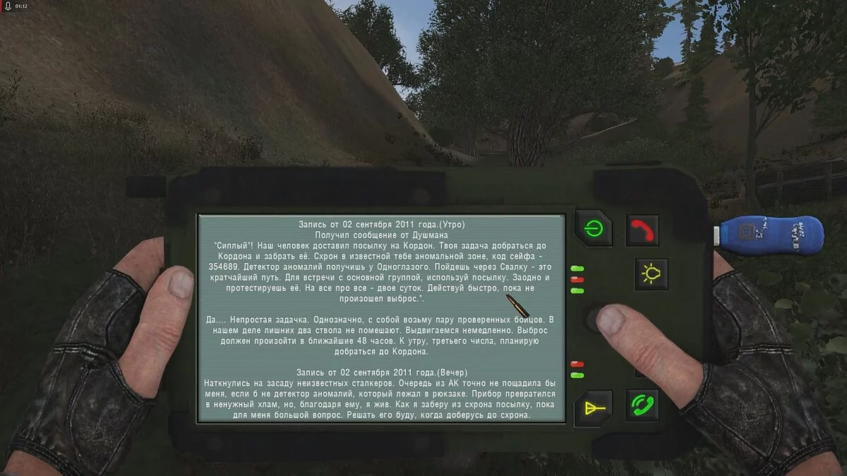 Информация на флешке гласит, что схрон находится в одной из аномальных зон. Здесь же записан пароль от сейфа — «354689».