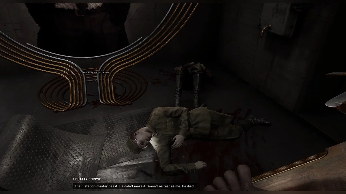 - Рядом со зданием, где вам нужно найти билет на поезд, есть четыре трупа, с которыми можно поговорить.