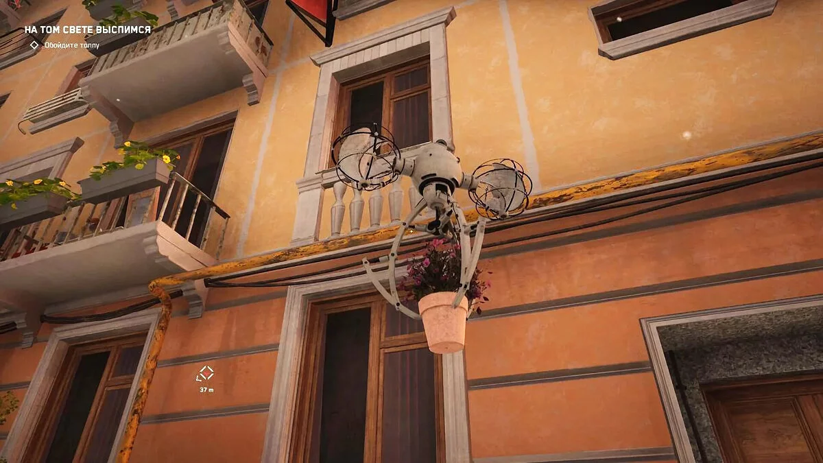 - Найдите балерину на платформе рядом с дырой в стене по левую сторону. Вам необходимо прыгнуть в эту дыру, чтобы попасть в изолированное помещение. Ищите на стене желтый маркер, чтобы найти под ним лежащее тело.