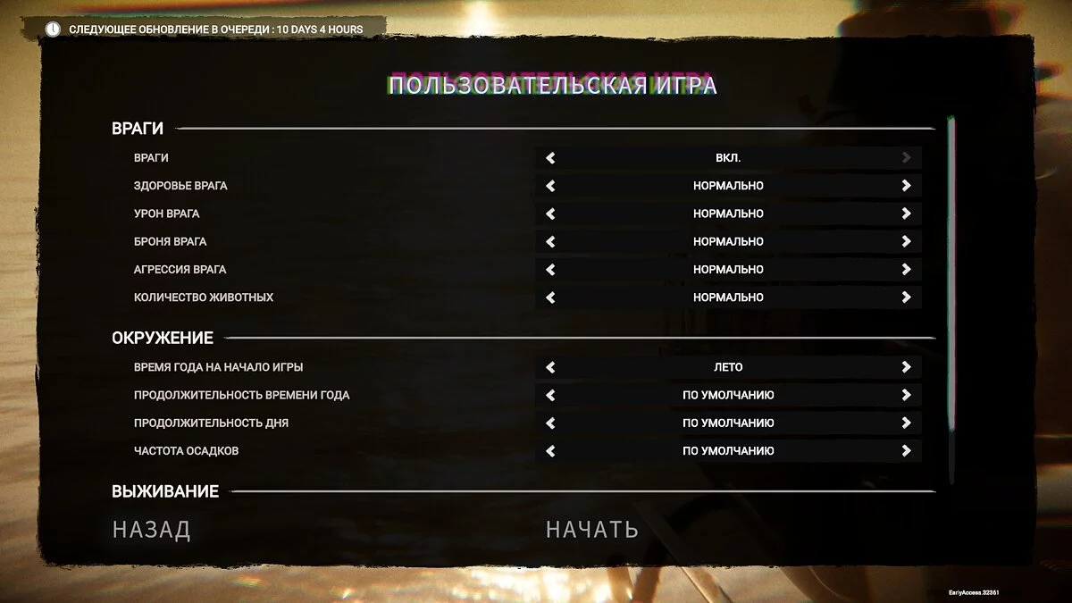 Выберите сложность. При желании вы можете настроить количество и сложность врагов, их здоровье, урон и броню. Здесь же доступны настройки окружения и выживания.