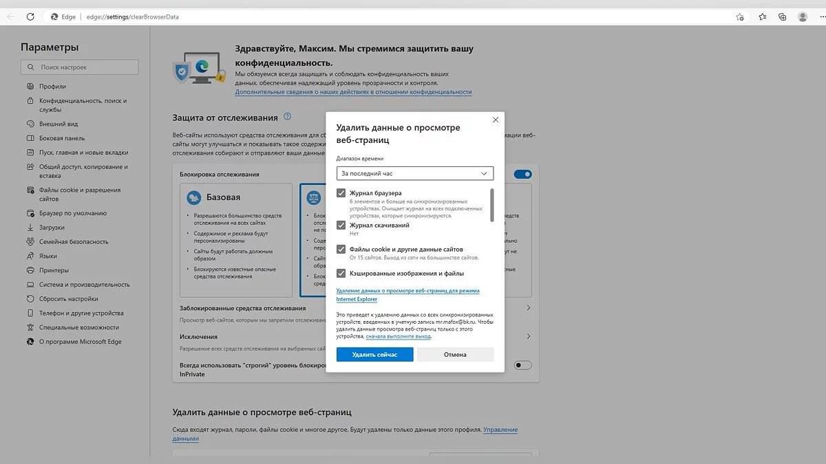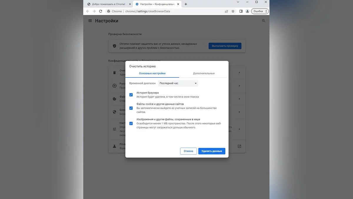 Чтобы почистить кэш и удалить файлы cookie, воспользуйтесь следующим алгоритмом: