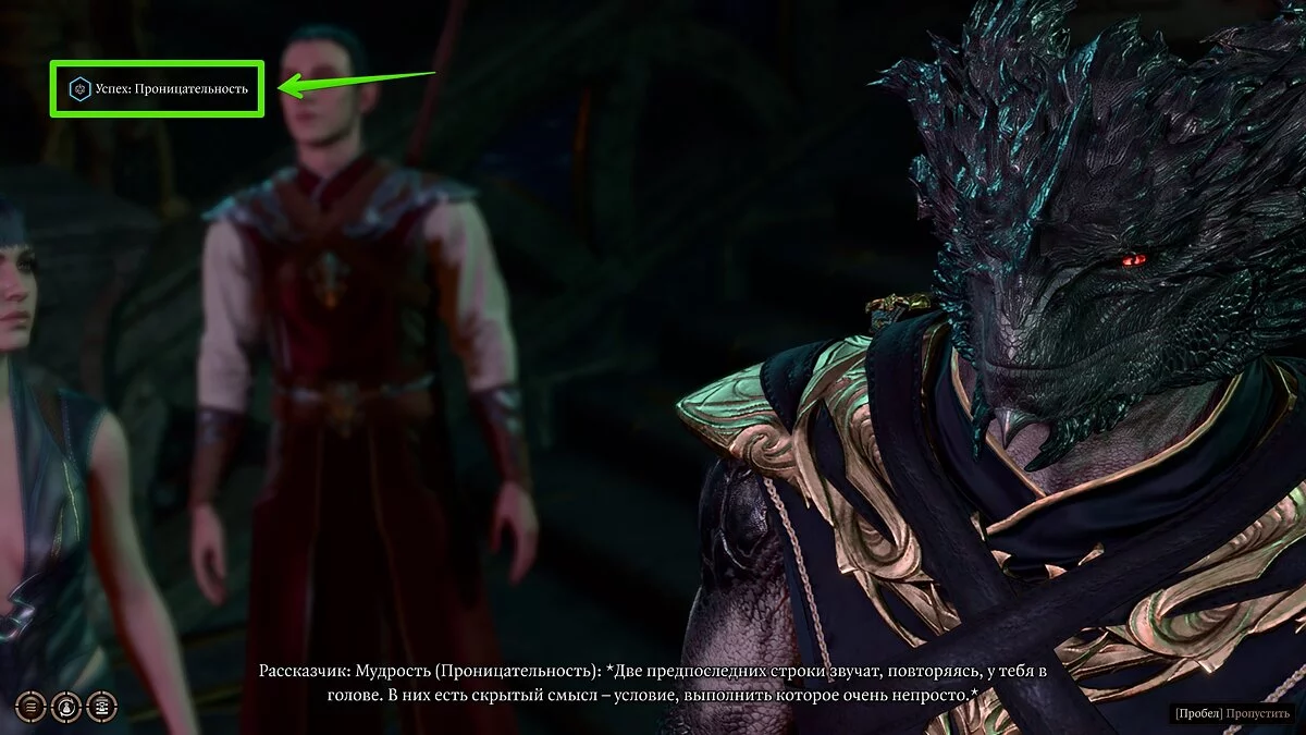 Если проверка на Проницательность будет провалена, нужный вариант не появится. Загрузите ближайшее сохранение и попробуйте снова.