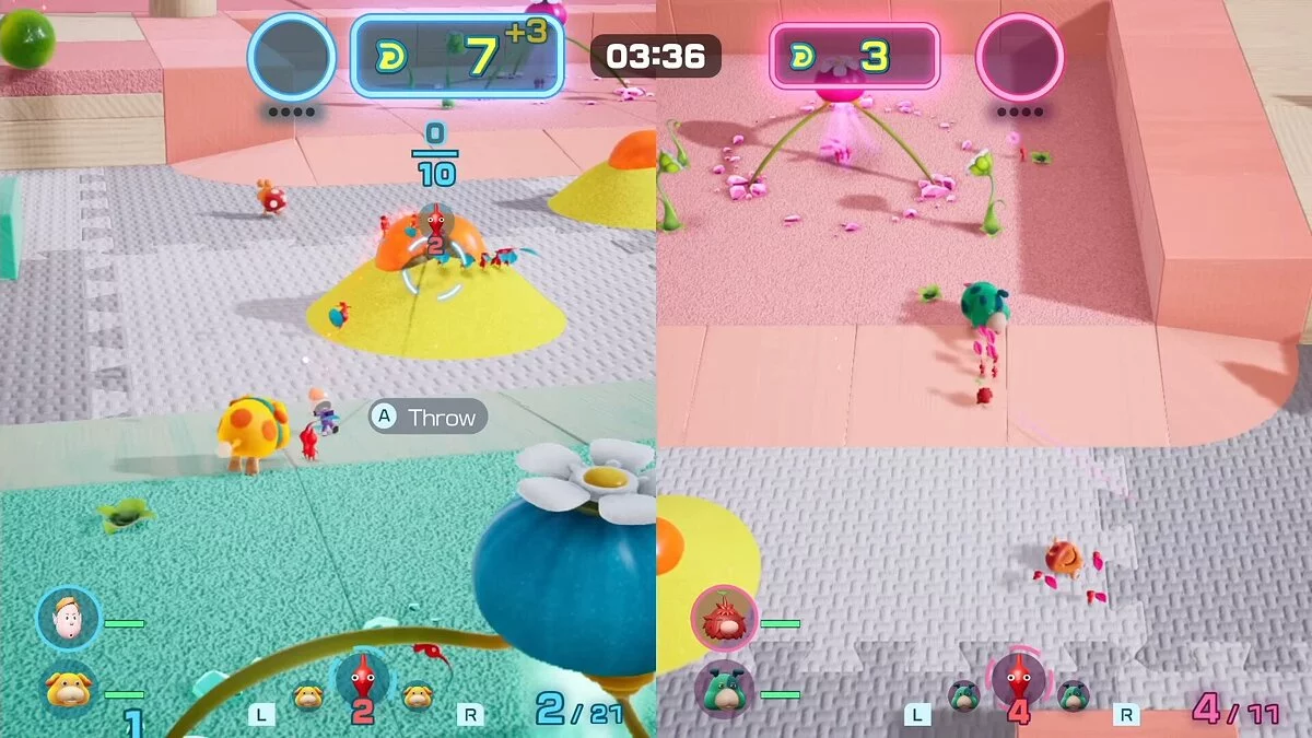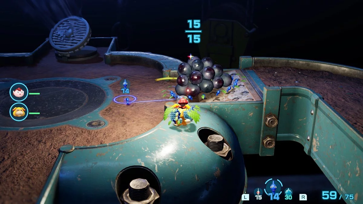 В прошлых частях серии был довольно бодрый кооператив, в котором второй игрок управлял дополнительным персонажем. Вдвоем было проще собирать артефакты за ограниченное время и веселее сражаться с боссами. Увы, в Pikmin 4 кооператив превратили во что-то странное. Напарник лишь управляет плавающим по экрану прицелом и бросается камнями. На этом все. Да, эти манипуляции помогут в перемещении артефактов или в сражении с противниками, но это все же вспомогательный режим для детей, а не полноценный кооператив.
