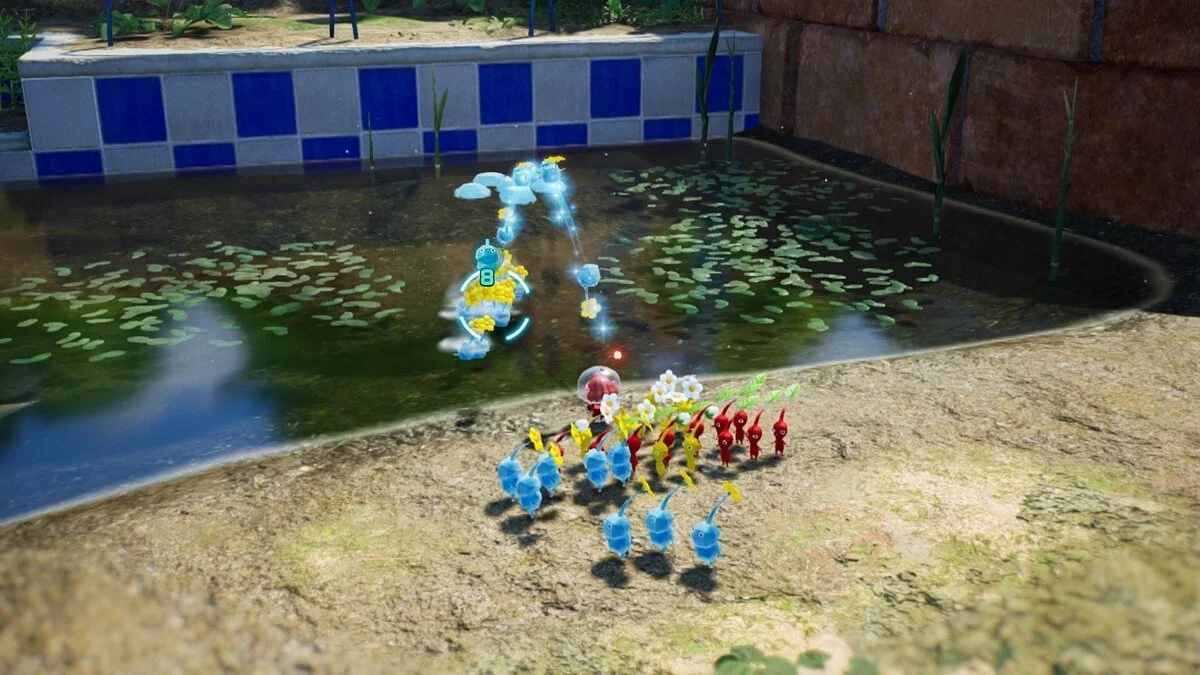 Пикмины бывают разных цветов, имеют отличительные физические особенности и невосприимчивость к определенному урону. Например, красные не боятся огня и способны таскать тяжести, желтым плевать на электричество, а еще они подбрасываются выше остальных, голубые замораживают противников и водоемы, а у фиолетовых просто кость широкая. Всего доступно девять типов пикминов, которых нужно освоить. На видовом разнообразии построено большинство головоломок, именно поэтому туториал занимает более двух часов от общего хронометража.