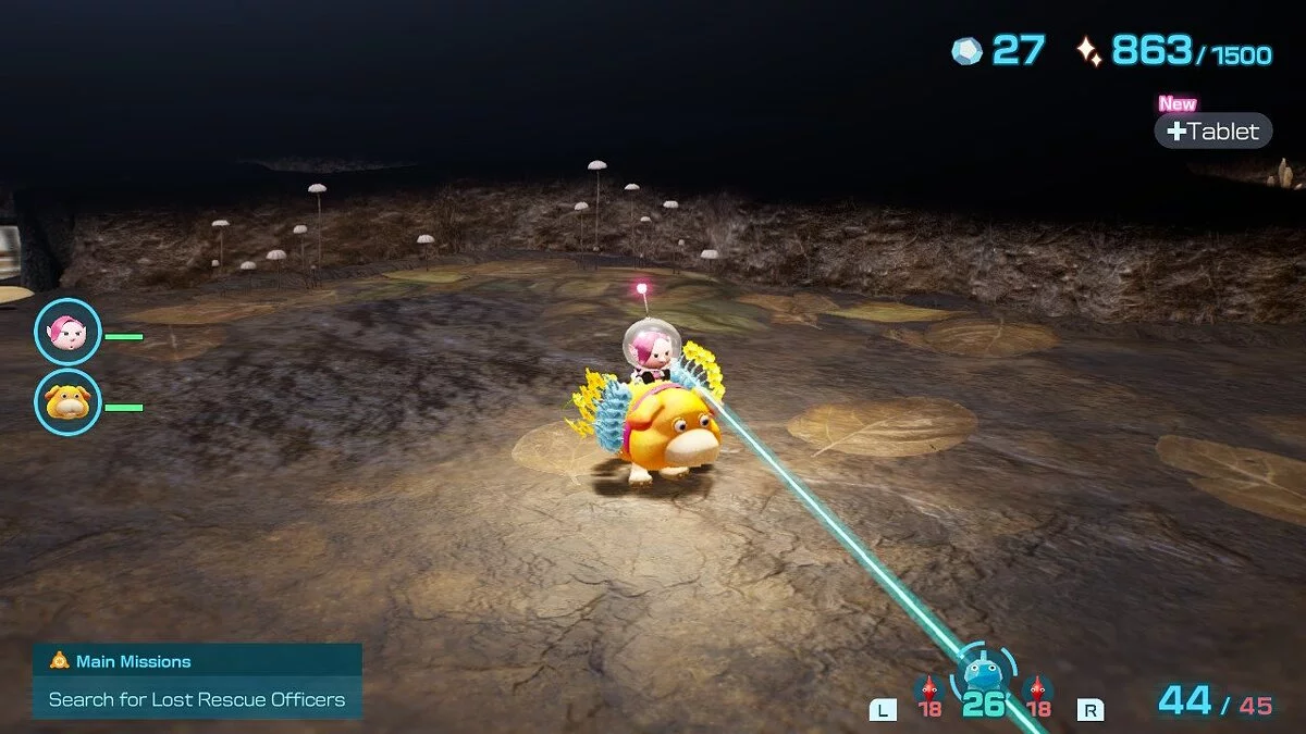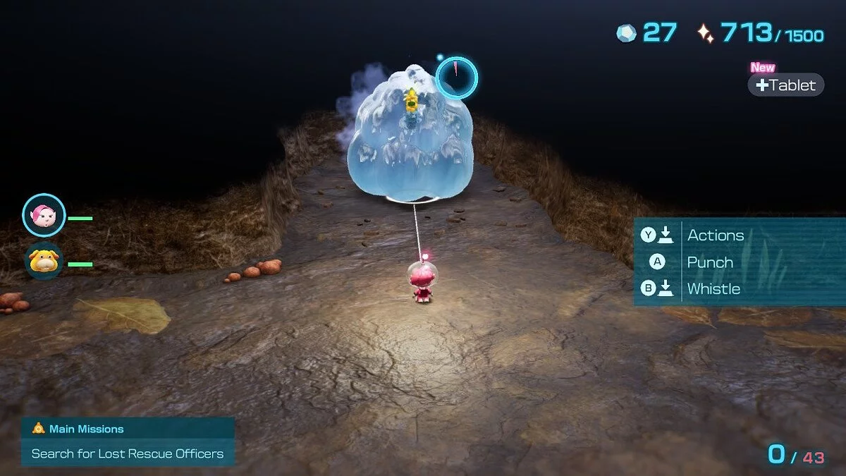 Пес не только меняет привычный стиль изучения окрестностей, но и существенно помогает в битвах — неплохо грызет противников и оглушает их на продолжительное время. Не стоит также забывать, что на его спине находится вся ваша армия пикминов, которую можно разом отправить на большого босса по нажатию кнопки.
