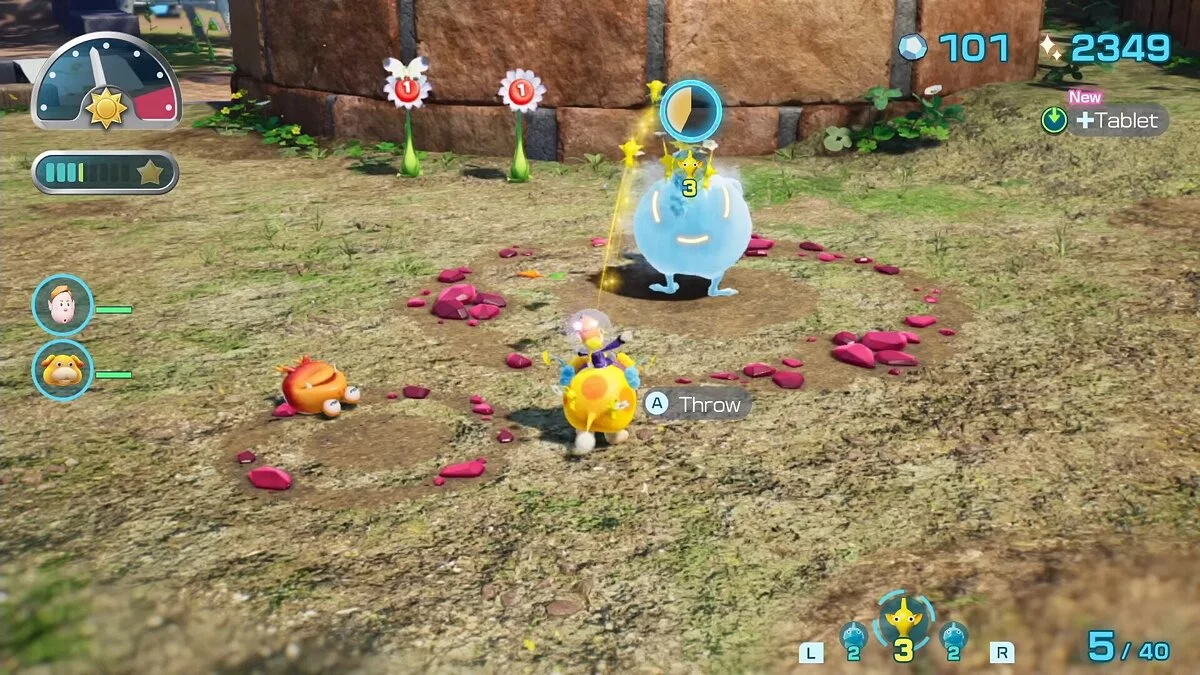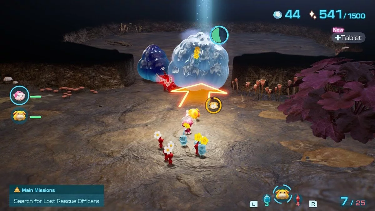 Иногда будут попадаться особые противники, в сражении с которыми нужны определенные пикмины. Но из-за того, что разрешается с собой взять только три вида юнитов, вас могут запросто застать врасплох. Благо для таких случаев есть особые предметы, которые нужно крафтить в начале каждого дня.