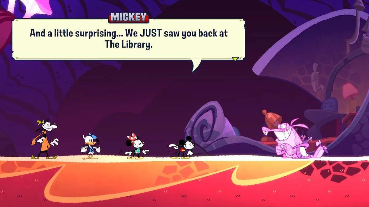 Мы, конечно, сократили пересказ вступительного ролика, который на самом деле очень продолжительный, но основную суть изложили. Дело в том, что сюжет Illusion Island выполнен в духе современных мультфильмов Disney: простой, местами аляповатый и с деконструированными классическими персонажами. Но при этом в истории есть былая милота и доброта, которую мы в детстве лицезрели на экране телевизора.